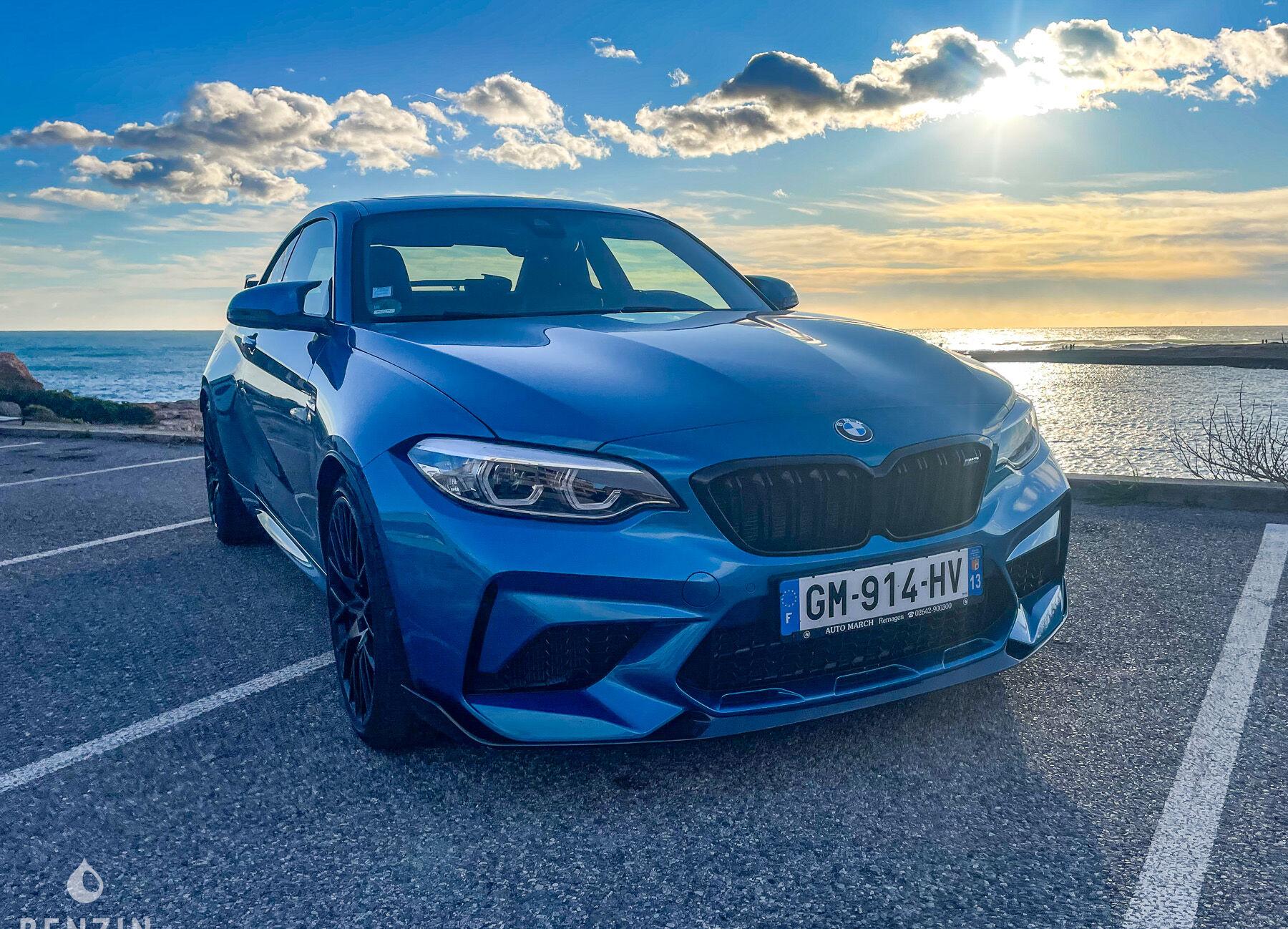 On the outside, the seller states that the vehicle is in very good condition. The bodywork, in its 'long beach blue metallic' colour, has only a few flaws that can be seen in the gallery. Photos of the underpinnings are available in the gallery. This M2 Competition features the following OEM M Performance components: - carbon fin- carbon diffuser- carbon front blade