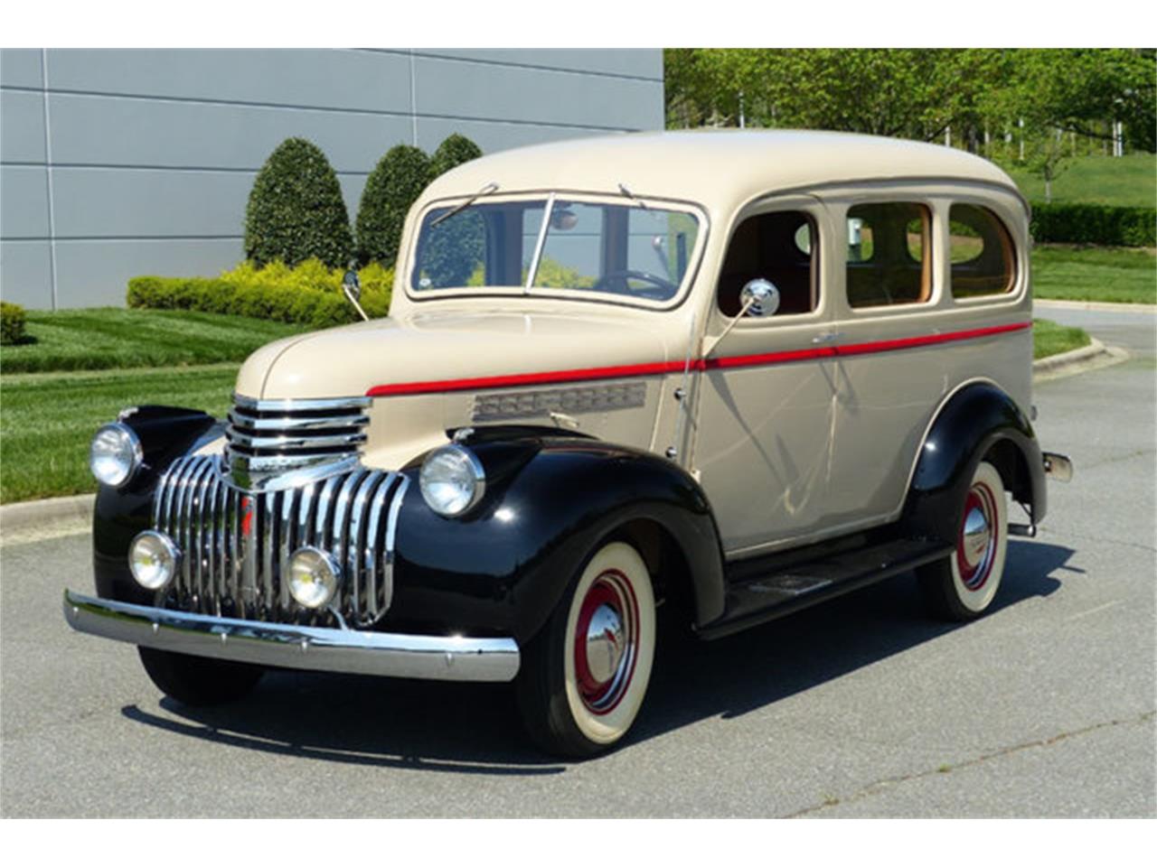 1941 Chevrolet Suburban, 216 cubic-inch six-cylinder engine which features a period-correct Wayne-Chevy cylinder head and Offenhauser intake manifold. The exterior sheet metal looks like it is new with a terrific two-tone paint scheme with red accent striping. All the chrome, glass and trim are excellent. The high-level quality carries over into the cavernous interior that features vinyl bench seating and superbly finished wood flooring. Engine: Period-Correct 216 Cubic-Inch Inline Six-Cylinder Transmission: 3-Speed Manual Equipment: Two-Tone Paint, Red Accent Striping, Dual Chrome Bumpers, Driving Lights, Turn Signal Indicators, Dual Windshield Wipers, Dual Exterior Red Painted Steel Wheels with Chrome Trim Rings and Hubcaps, White Wall Tires, Running Boards, Dual Exit Exhaust, Single Tail Light, Barn Style Rear Doors, Front Bench Seat with Tilt Passenger Seat, Tan Vinyl Upholstery with Red Piping, Rubber Front Compartment Flooring, Finished Wood Flooring in Passenger Compartment, Finished Interior Wood Window Frames, Cloth Headliner.