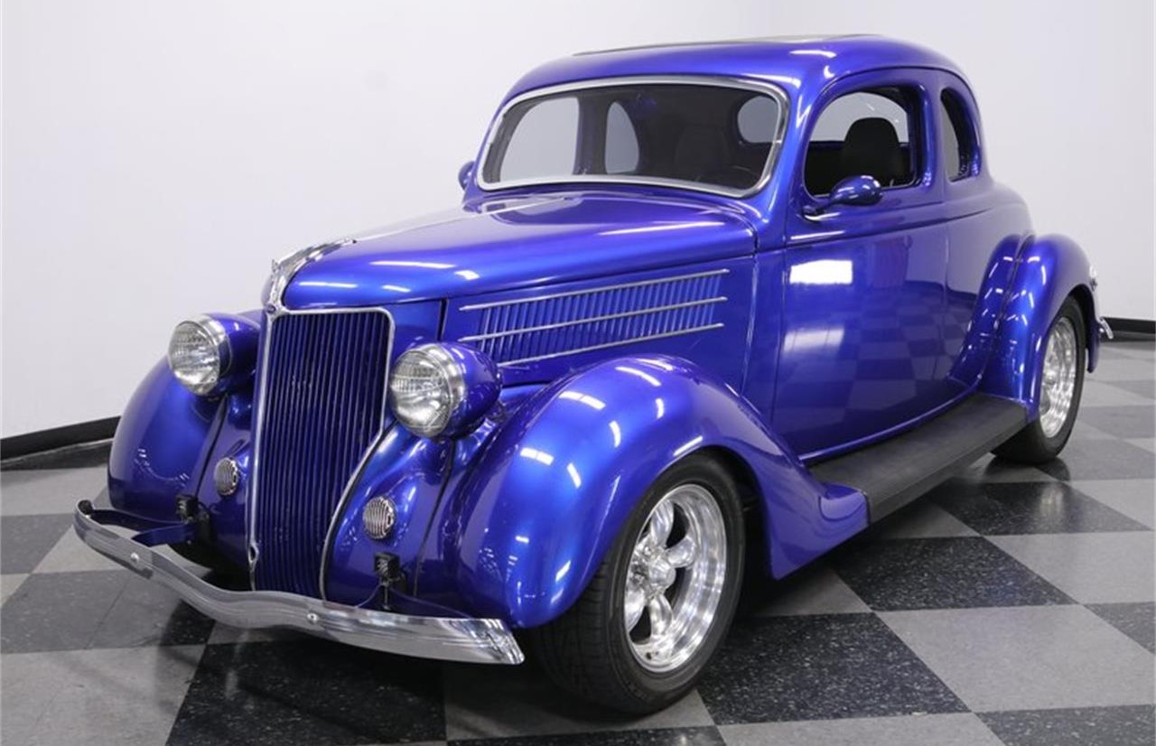 This 1936 Ford 5 Window Coupe is a sleek all steel custom street machine with proper V8 power and an A C interior.