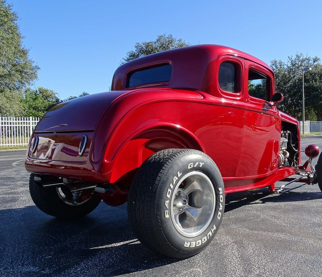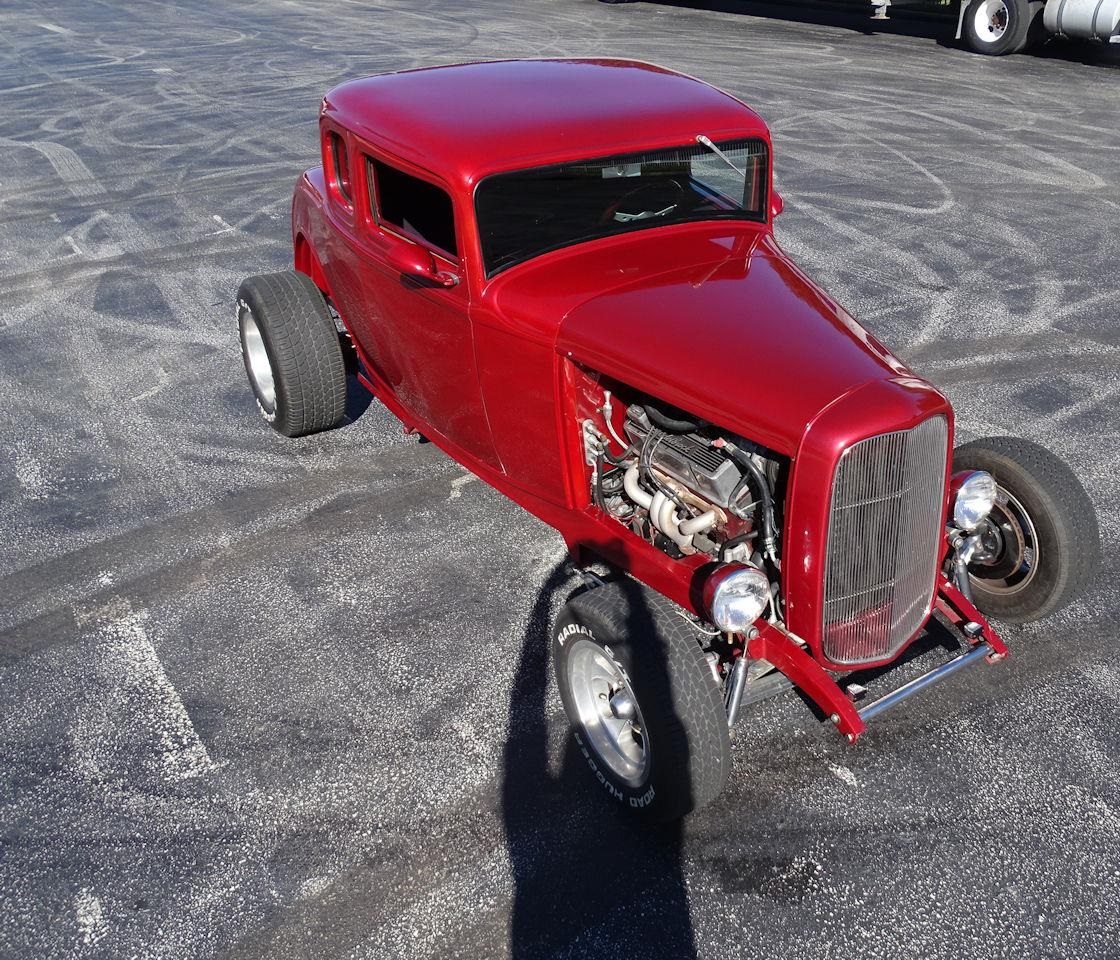 Powering this 32 Hotrod is a 350 Small block V-8 and paired to an automatic transmission. Walking around the exterior of this sharp hotrod you instantly notice the sharp Burgundy paint. This car is all fiberglass. When getting into the car you see the Black/Gray Cloth interior, and Options on this hotrod include AM/FM radio, Power brakes, Custom Cloth interior, AC, Chrome wheels and radial tires.