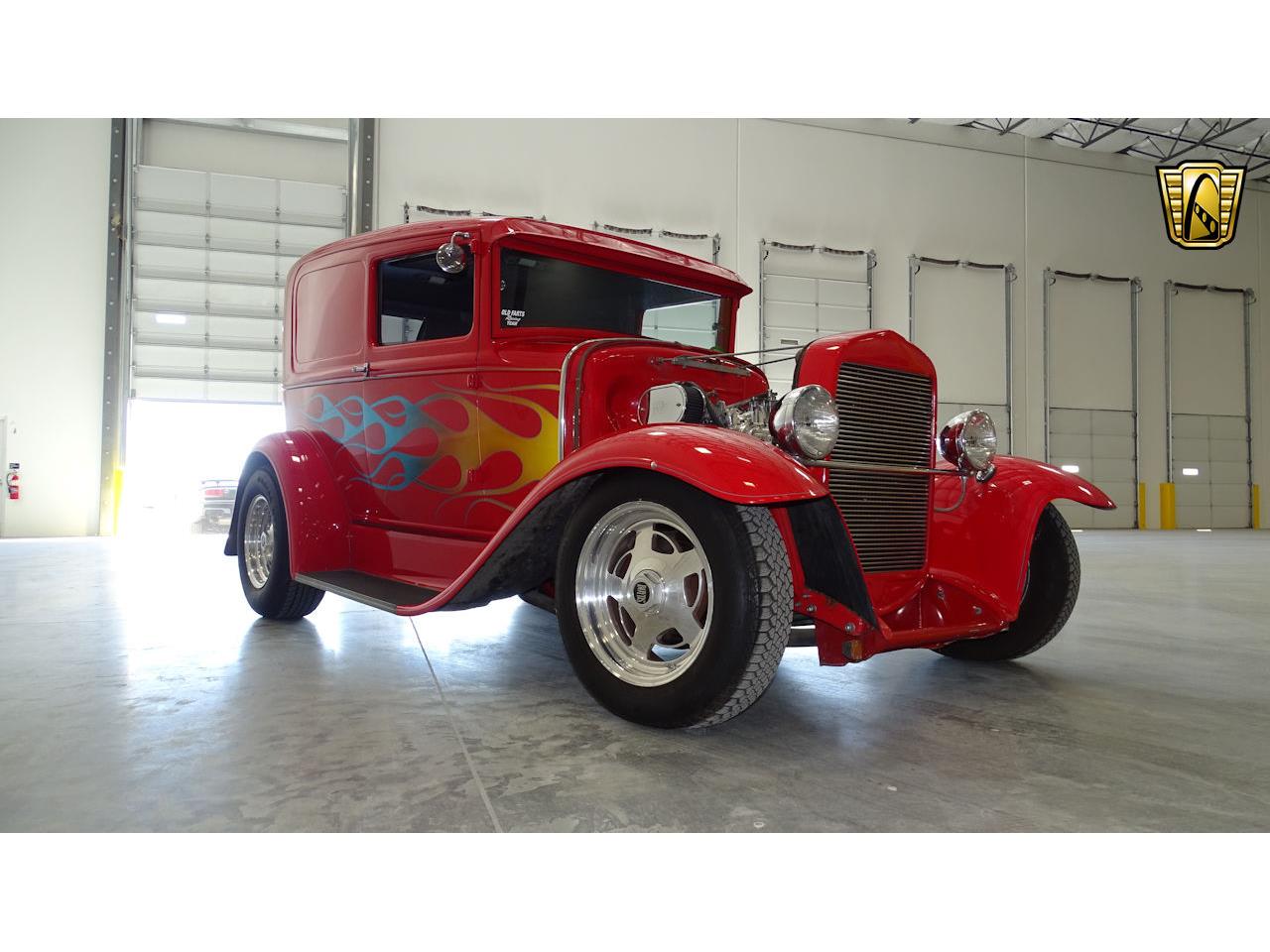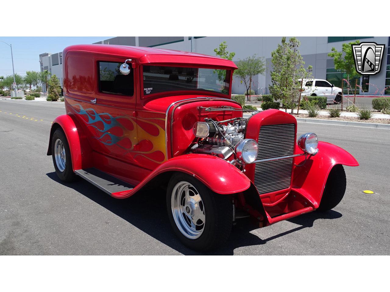 1930 Ford Model A Sedan for sale. Beautiful red paint with brilliant flames. 350 cu small block that shines and really packs a punch. Sitting on top of the motor is a Polished B&M Supercharger and chromed GM Alternator; combined with a set of side draft Mikuni Carburetors. Turbo 400 automatic transmission mated to a Chrome 10 bolt rear end. The interior in this Sedan Delivery is full of custom touches including: Custom Steering column, Le Carra Steering Wheel, Flush Dash, Custom Instrument panel, and Custom Grey Interior. This red machine is ready to burn up the streets and be shown off. This 1930 Model A Sedan Delivery options include: AM/FM Radio, CD player, Tilt Wheel, Cloth Interior, Seat Belts, Boyd Coddington Wheels wrapped in Radial Tires and a Kill Switch.