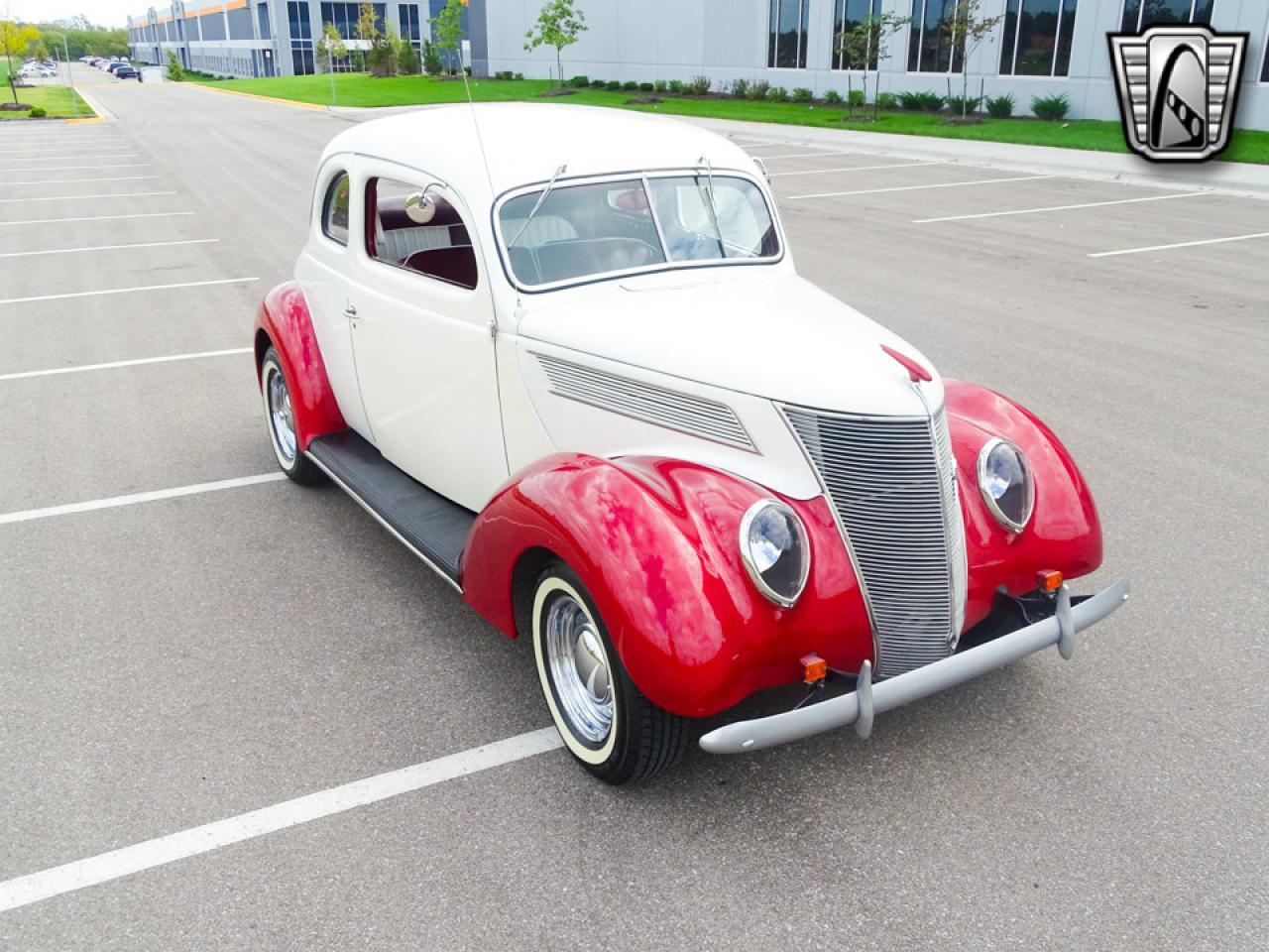 1937 Ford Club Coupe! This vehicle sounds, runs and drives great. This car will turn heads everywhere you go with a beautiful creme and ruby paint scheme, it also has matching tuck and roll leather interior that compliments the car in every way and white wall tires to go with the sparkling chrome wheels and hubcaps. Some modern touches were made such as a new electric fuel pump, electric fan, and electric windshield wipers.