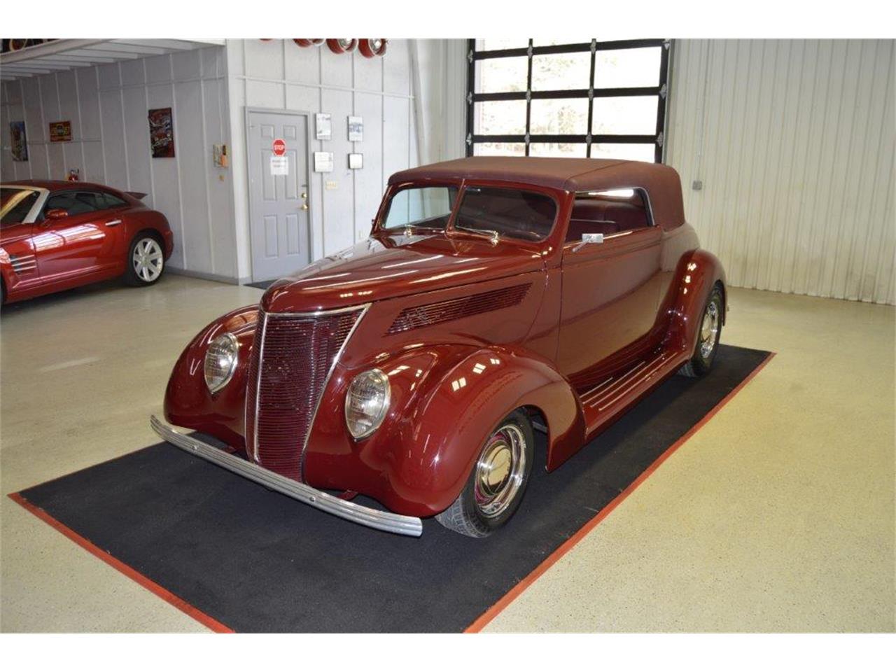 Built 350 V-8 engine TH350 automatic transmission Power front disc brakes A/C Power windows B&M Supercharger B&M Performance intake manifold Headers Chrome alternator Custom valve covers and air cleaner Braided hoses Electric fan New wiring Very nice leather interior Door panels, dash, headliner and carpet are like new Reclining bucket seats Power seats Tilt steering column LeCarra matching leather steering wheel VDO gauges Cruise control Alpine stereo system with amp and crossovers Billet pedals Perfectly upholstered trunk space Remote door and trunk poppers Gorgeous exterior Red Wine finish Custom running boards Removable hardtop Glass and trim looks great Power antenna Driven 9K miles since completion 15” rear wheels with new 235/75R15 radial tires 14” front wheels with new 195/60R14 radial tires Chrome Ford center caps Billet mirrors and wipers Detailed undercarriage Ford 9” rear end Stainless battery box Dual exhaust Dropped front axle with transverse leaf spring