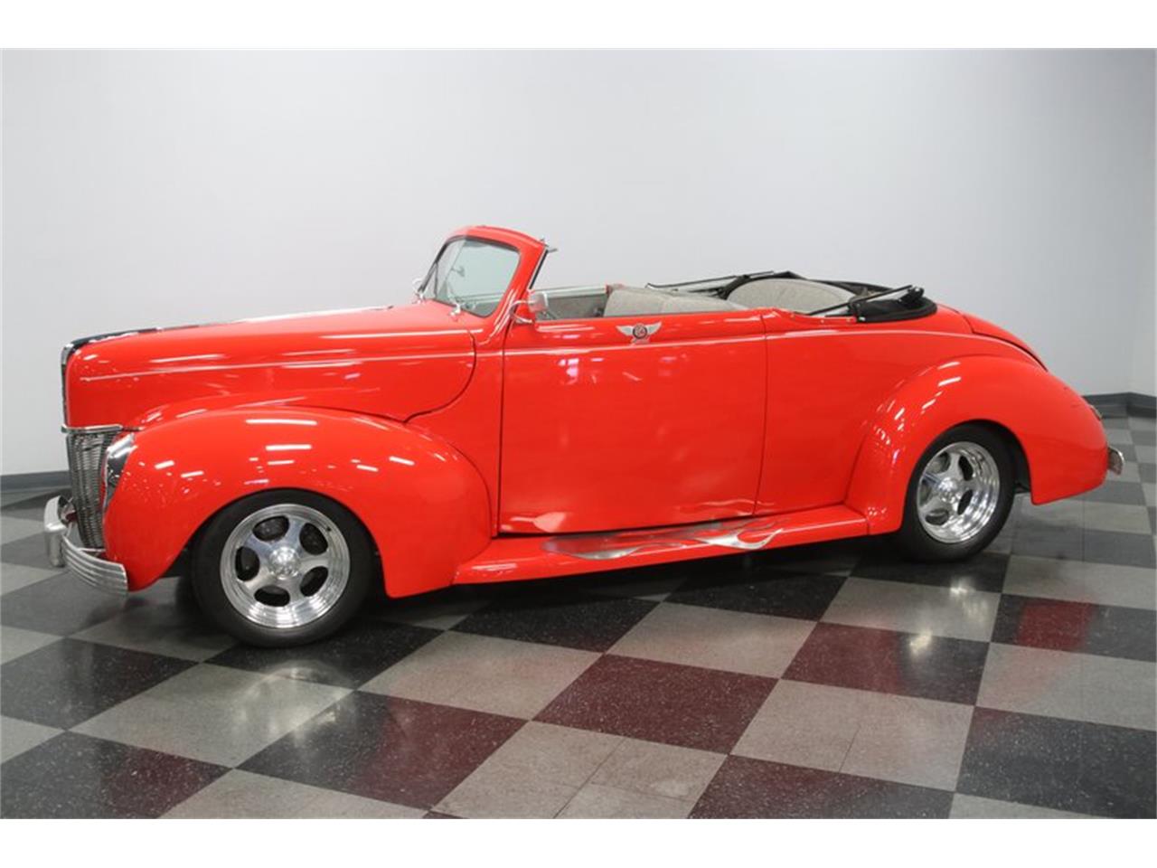 With an upgraded A/C interior, upgraded suspension, upgraded V8 power, and a vibrant color combo, this 1940 Ford Deluxe Convertible Coupe makes quite an impact wherever it goes.