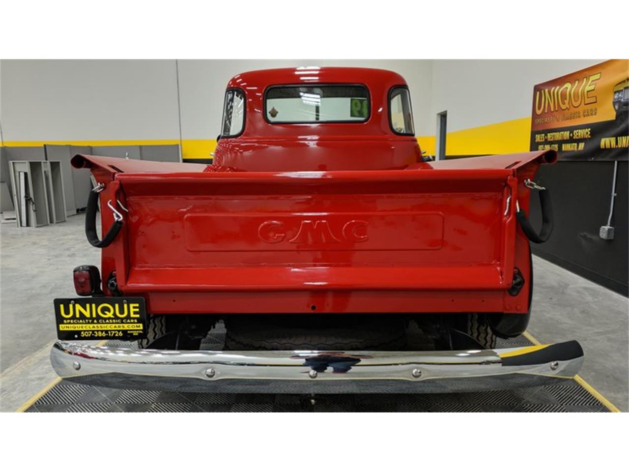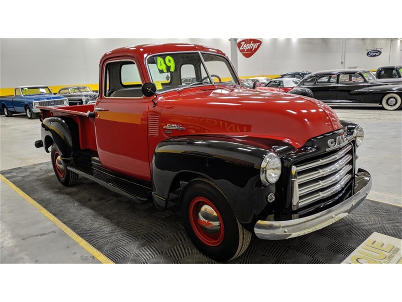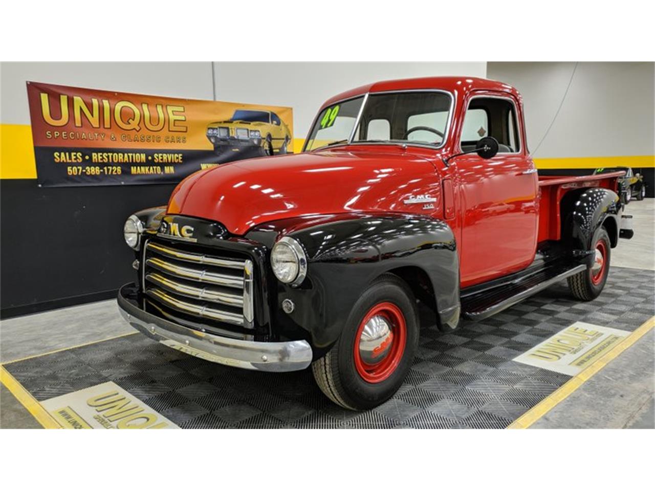 1949 GMC 5-Window Pickup finished in red and black paint.
