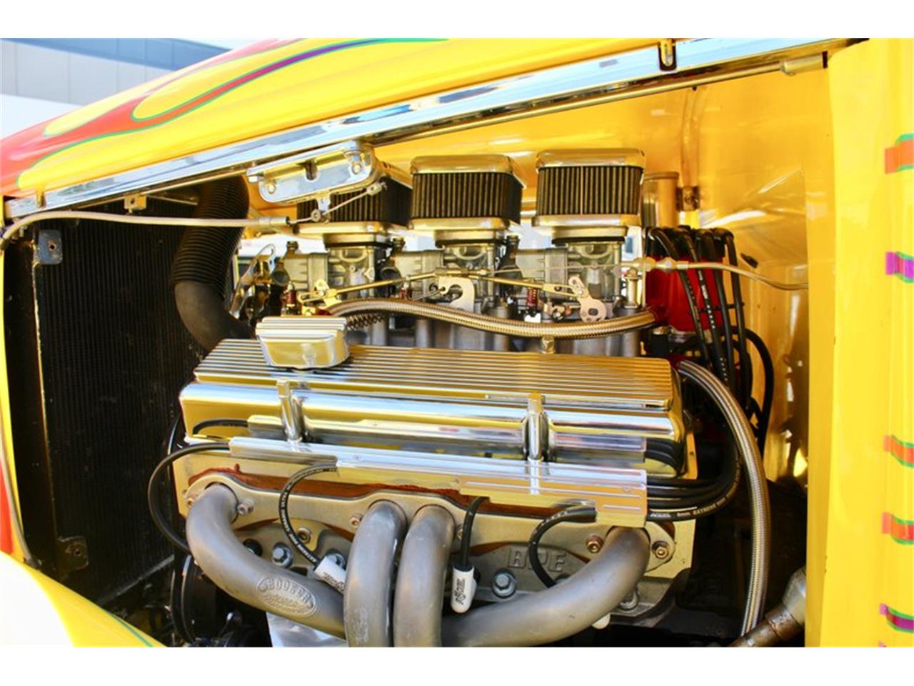 Built 350-383 Tri power set up all chrome drop axels 9in Ford rear with coil over suspension. show quality paint with the 60s flames that are stunning. over head console with tape deck.