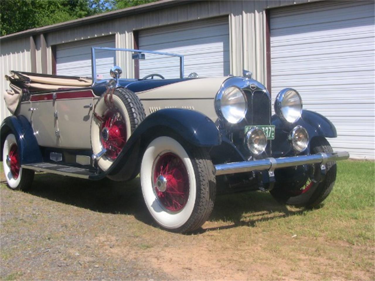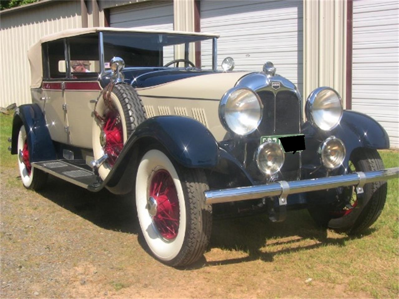 This is a very rare collector car and one you wont see very often. The dual side mount exterior is a gorgeous tricolor combination of cream paint, dark blue fenders and the cream color doors have burgundy trim at the top. The top is tan and in excellent condition. The leather interior is burgundy and presents in excellent condition. Engine is the Lycoming 8-cylinder 300 cubic inch paired with a 3-speed transmission with overdrive. The lube system is Bijur. Brakes are 4-wheel brakes on a 130-foot wheelbase. The gas gauge is a King-Seely.