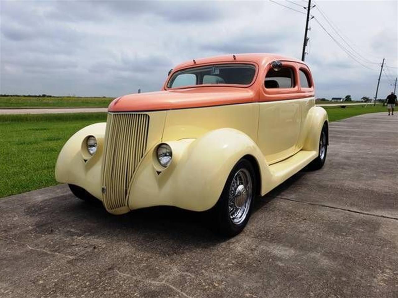 1936 Ford 2 Door Slant Back. As you can see, this 36 is highly modified. Suicide doors, 37 style headlights, tilt hood, LED 3rd tail light frenched custom LED tail lights, etc. etc. Suffice it to say you will be the only one with a 36 like this. Y B NRML.. 351 Cleveland, headers ,full exhaust with chrome tips, custom plug wires, K N filter, smooth firewall. Air conditioning, C6 automatic, Ford 8 Highway gears. Mustang 2 front end, rack and pinion steering. Power disc front, drum rear. Full custom interior, center console with cup holders and phone charger. Electric windows, good glass, Dolphin gages. Runs smooth and drives good.
