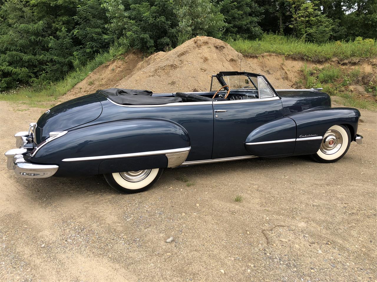 150 bhp, 346 cu. in L Head V 8 engine with four speed Hydra Matic transmission, coil spring independent front suspension, live rear axle with semi elliptical leaf springs and four wheel hydraulic brakes. Wheel base 129 . When Cadillac resumed production of the passenger cars after World War II, it advertised them as Battle Powered with Victory and rdquo engines.