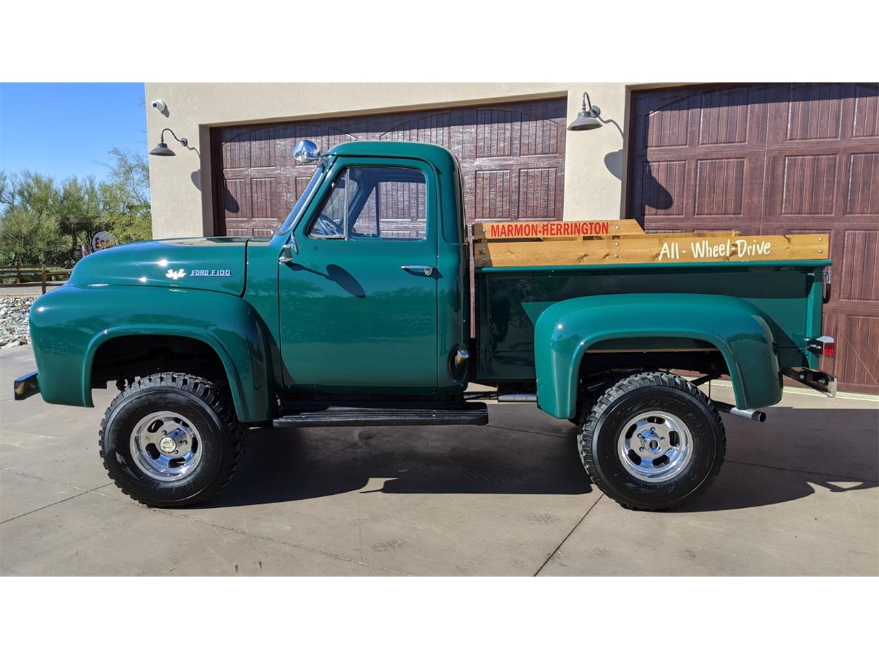 For Sale, Extremely Rare 1954 Ford F100 4x4 Marmon-Harrington Company conversion! Beautiful frame on restoration, with brand new wheels and tires! This truck is powered by a 1963 date coded 406 Ford Fe engine with original manual 4 speed transmission with auxiliary pto.