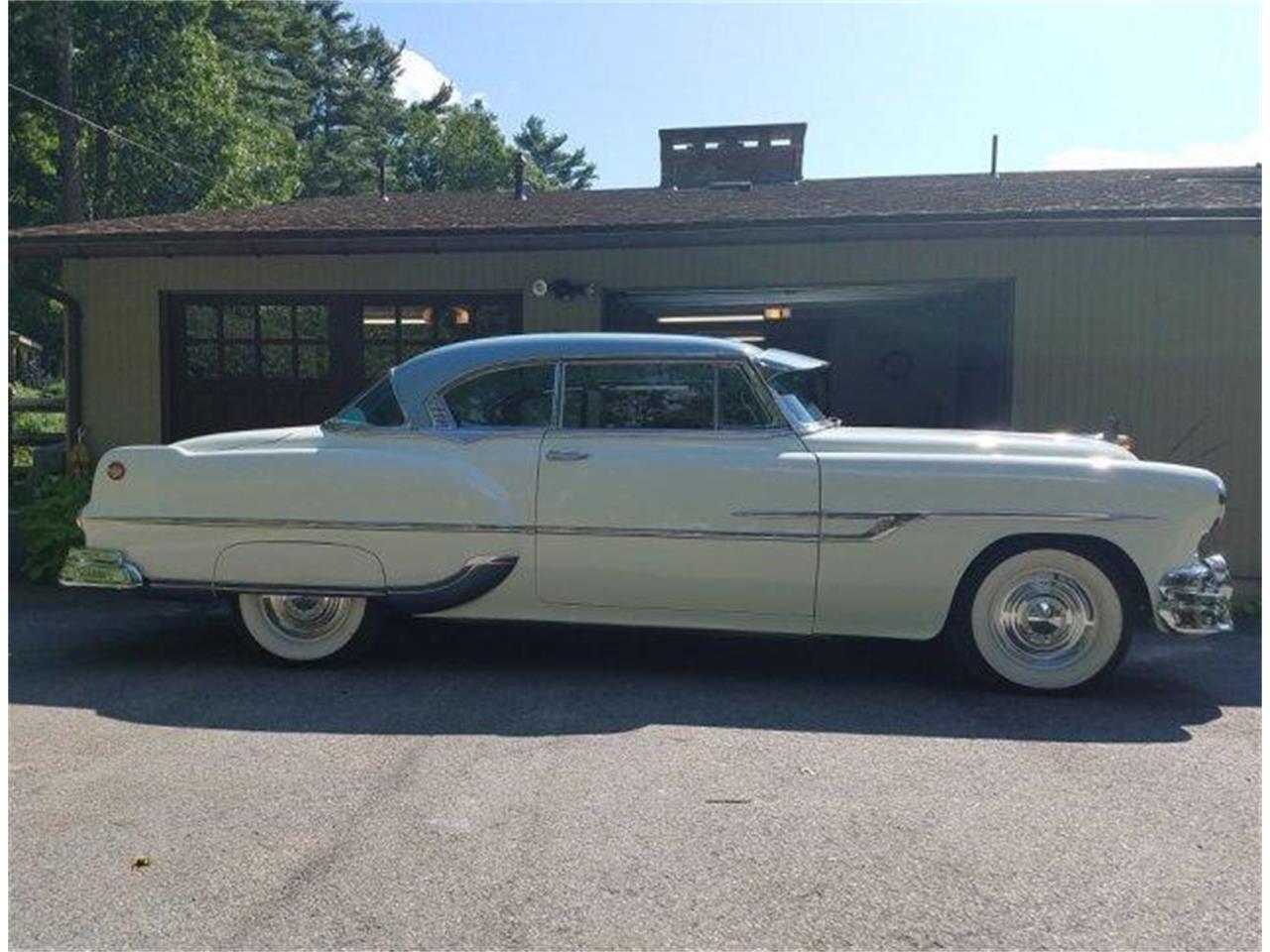 1953 including power steering, sun visor, driver\'s side spotlight, running lights, fog lights and wide white wall tires. Car also had after market vintage AC installed. Rare color combination of white and stardust blue hardtop with blue and white interior in overall excellent condition. Car features the 268.4CI line 8 cylinder engine coupled with a 3 speed manual transmission on the column and drives beautifully. Paint on the car is in excellent condition and all chrome and trim is intact and shines bright. Undercarriage of the car is very clean with no evidence of any rust. Most everything on the car works as it should. Power antenna and spotlight need minor attention.