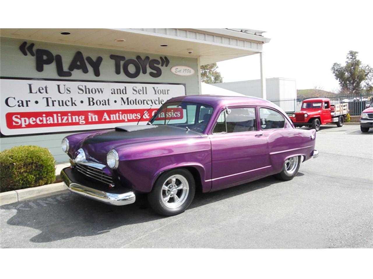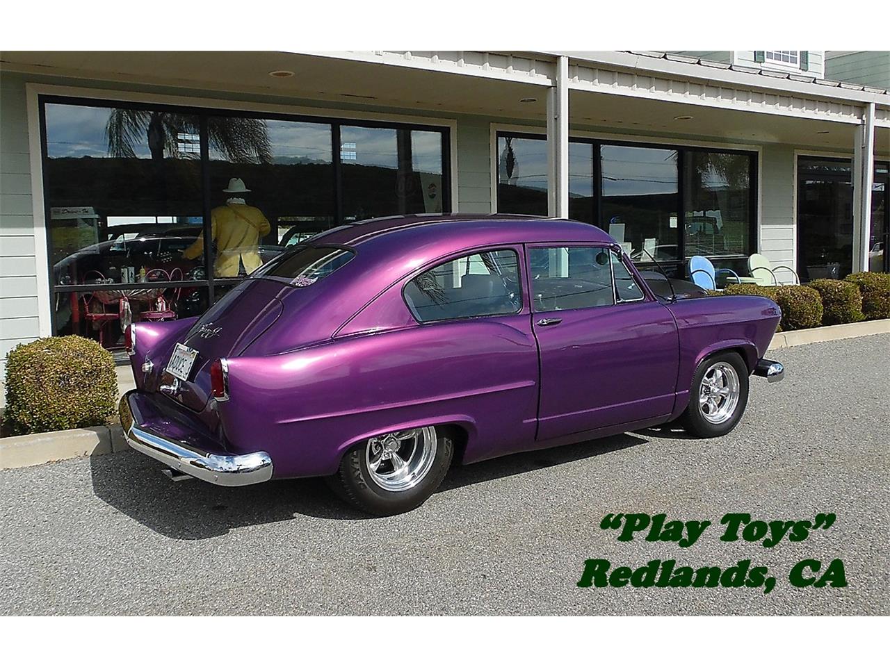This 1953 Henry J Corsair has an older restoration and comes equipped with a 86 Chevrolet 454 V8, Turbo 400 Automatic Transmission, Holley 750 cfm Carburetor, Griffin Aluminum Radiator, Rack-n-Pinion Steering, Power Front Disc Brakes, Ididit Tilt Steering Column, GT Grant Wood Steering Wheel, Dakota Digital Gauges, Legacy AM/FM Stereo with CD Player, Bucket Seats with Custom Center Console, Custom Purple and Gray Tweed Upholstery, Dual Exhaust, 15" American Racing Chrome Wheels, Tires: Front 165 R15 (Le Mans), Rear P275/60/R15 (Daytona), Mustang 2 Front Suspension, 9" Ford Rearend, and Custom Traction Bars.