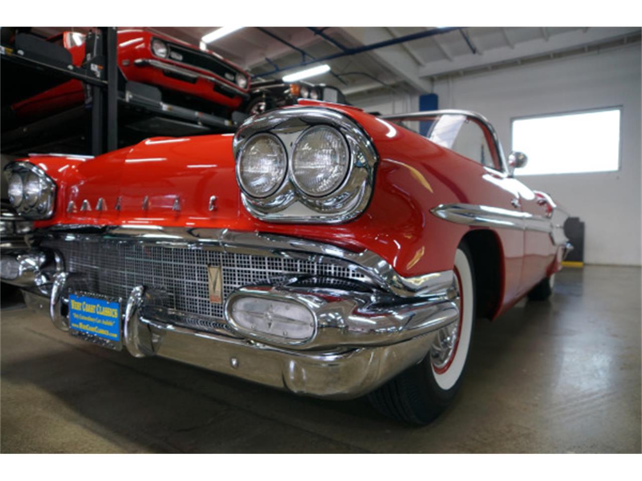 West Coast Classics are proud to present an absolutely exceptional and completely rust free example of this recently both mechanically and cosmetically restored, and with only very few miles since being restored, of a mostly all original 1958 Pontiac Chieftan 370/300HP V8 3x2 BBL Tri-Power V8 6 passenger Convertible in a beautiful and extraordinarily striking two-tone 'Rangoon Red amp; Patina Ivory' color and with an absolutely beautiful all new 'Red amp; White' interior and with a new White power soft top! One of only 7,359 built in the very last year of production.
