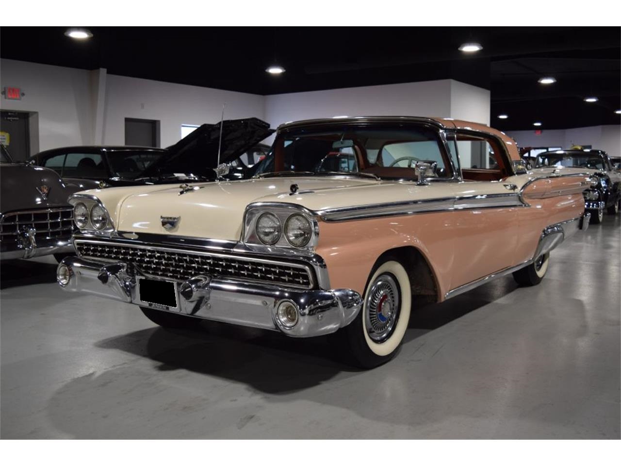 1959 Ford Galaxie Skyliner Powered by the big motor,352 CI V8 four-barrel carburetor with the right equipment. Power hardtop functioning as it should, power steering, power brakes, radio and heater. Whiteside wall tires, fender skirts and more. Super cool RCA Victor 45 record player. Gorgeous two-tone paint exterior with a correct interior finishes upholstery etc. Drives like an absolute dream, turnkey condition.