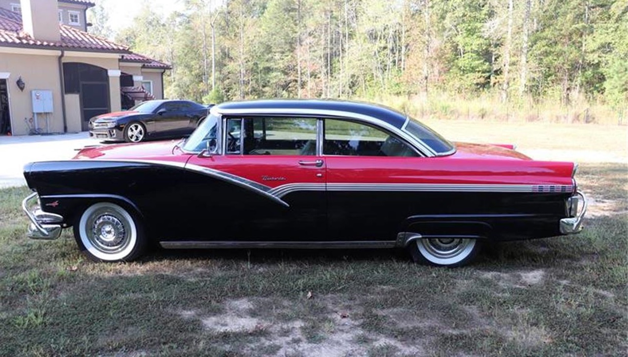1956 Ford Hardtop Victoria Mechanical. Power by massive 390 Big block. 3 speed manual Exterior. Raven black paint. Super Straight down each side. All chrome and stainless in good condition Interior. Black and white interior. All interior in decent shape no tear. Steering wheel and dash in good condition. Trunk has mat and spare tire.