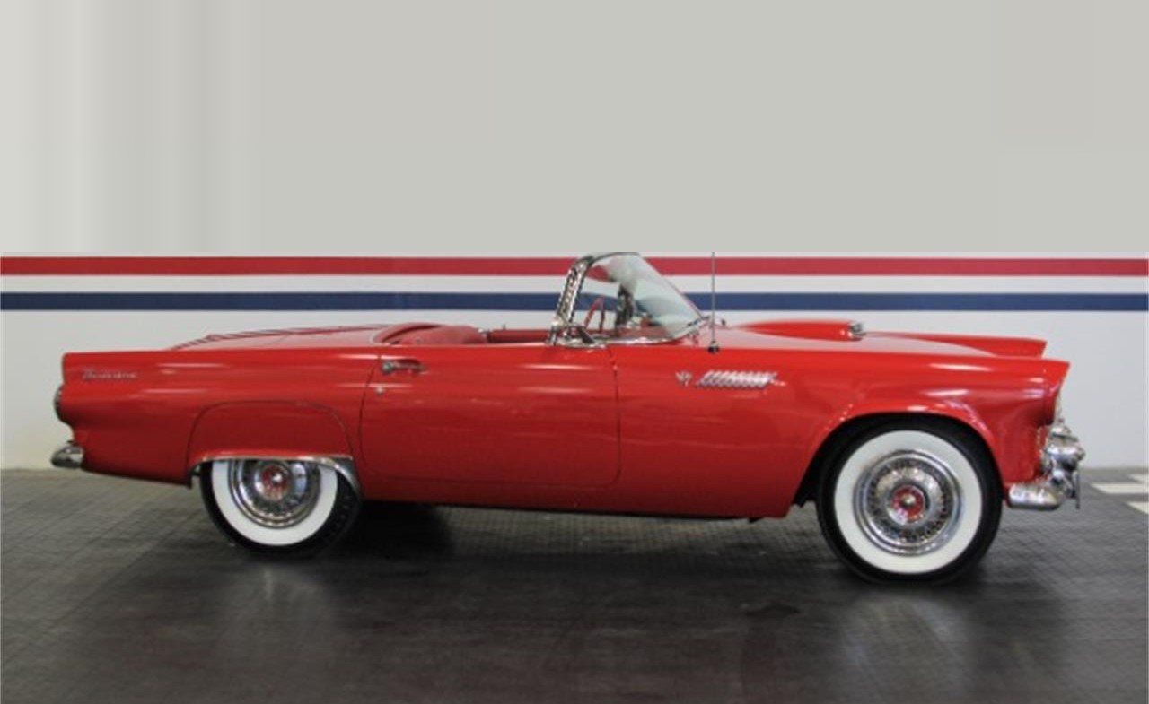 Stunning 1955 Ford Thunderbird Roadster Restored to its Original Red on Red White Color Combination. A Must See. 292 CID. Engine. Automatic Transmission. Chrome Air Cleaner. 4BBL Carburetor. Finned Aluminum Valve Covers. Dual Exhaust. Power Steering. Power Brakes. All New Interior. Padded Dash.