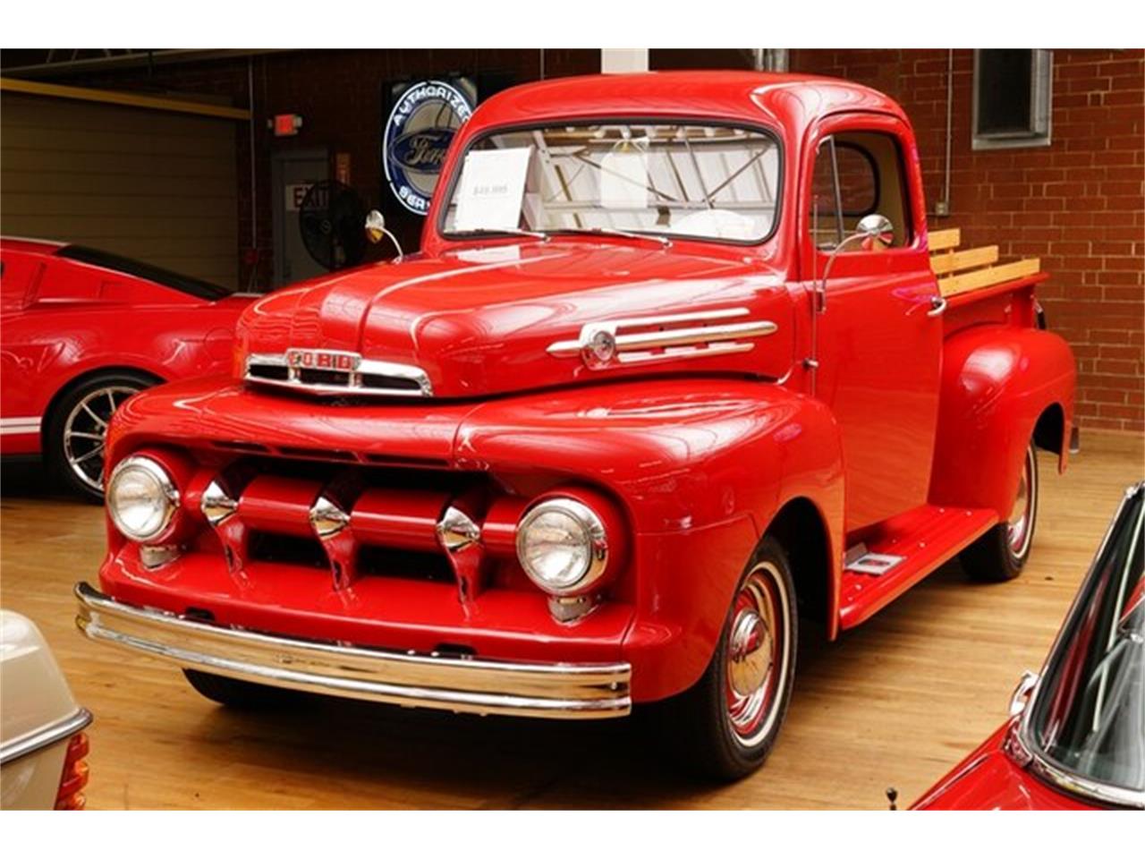 This beautiful First Generation F Model 1952 Ford F1 Pick up is presented in Coral Flame Red with Tan interior. It has a beautiful oak bed and a 239 cu in 100hp Flathead V8 backed up by a 3 speed On the Tree manual Transmission. It has been completely restored that shows a quality FORD TRUCK. The flathead V 8, still at 239 cid, got a bump in compression ratio, increasing output to 106 horsepower. Hood trim was revamped, and front grille color was changed from silver to white, This one has the color matched with Chrome.