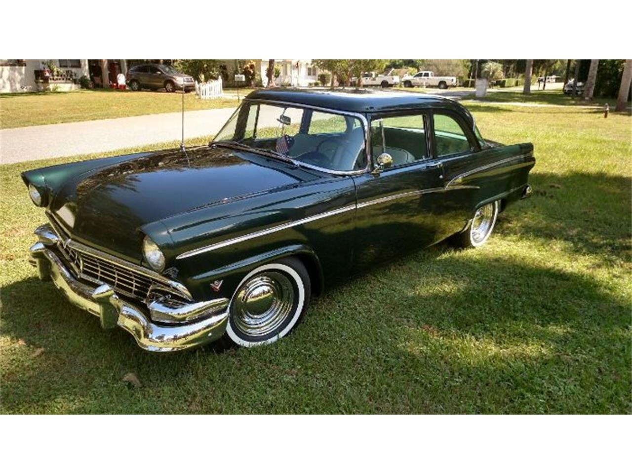 1956 ford customline 302 rebuilt engine aod automatic transmission power steering power brakes disc frt drum rear air conditioning heat classic in dash vents custom gauges cruise control everything works properly custom tilt wheel tach chrome steelies w/wide whites american classic mercury tail lights kleenex holder order option 12 cd player am fm cassette custom interior dual exhaust flowmasters