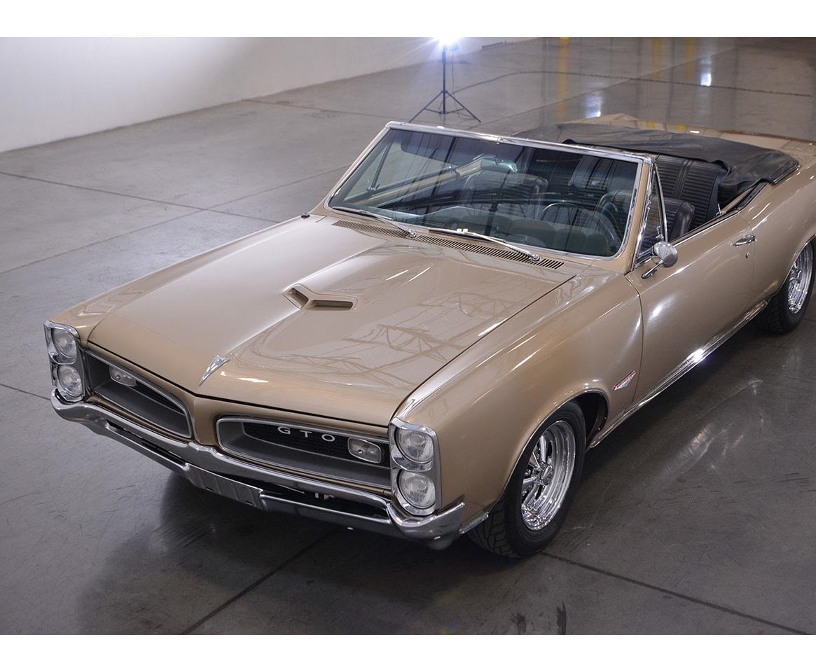 1966 Pontiac GTO convertible numbers matching 389 CID V8 engine, 3-speed floor shifter automatic transmission. The black vinyl interior is mostly original inside this GTO and you'll love the factory gauges and lap belts. The power convertible top works very nice.