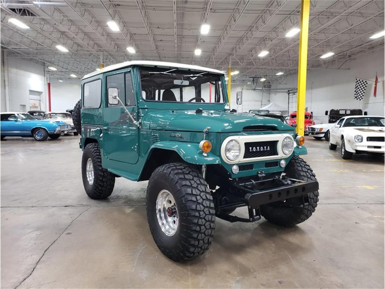 Inside, Master Craft bucket seats combine with correctly finished metal panels make the classic industrial look of the original truck stand out. Automatic transmission, power steering and air conditioning make this one fun to drive. On the outside the unmistakable profile of the FJ40 is raised by a set of 35'' BFG KM2 tires mounted on a Spring-under Axle setup from a Toyota truck. The rear suspension was replaced with a modern Toyota mini truck, swapping the rear drums to disk at the same time. An upgraded set of Bilstein 5100-series shocks keep the tires firmly planted. Under the Mickey Thompson 15 x 8' wheels, the disc brakes are powered by a Wilwood master cylinder. Best of all, this show quality restoration was treated to the best upgrade of all... a 5.3L GM LS V8 with Turbo 350 automatic transmission and 4WD transfer case. This FJ has the looks, quality and performance that makes it a special buy.