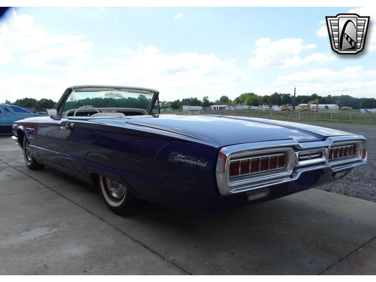 Deep blue 1965 Ford Thunderbird convertible for sale. The blue paint on the car looks great with the base coat clear coat giving it a whole new depth that could not be achieved back then. The white top just enhances that blue even more. The hubcaps are a welcomed addition and give it a classic feel. Under the hood is one of Ford's go to engines an FE big block 390 that sounds amazing. The transmission shifts nicely giving the car a very cruiser feel. Unlatch the 2 hooks and hit the button as the white top comes down giving the car a totally different look. The white leather interior is easily showed off now and is sure to grab attention no matter where you go. Great condition.