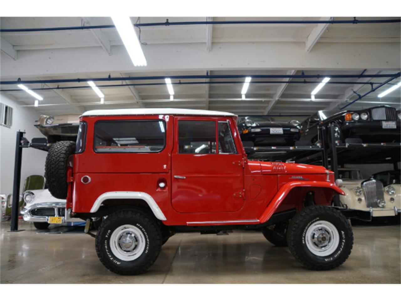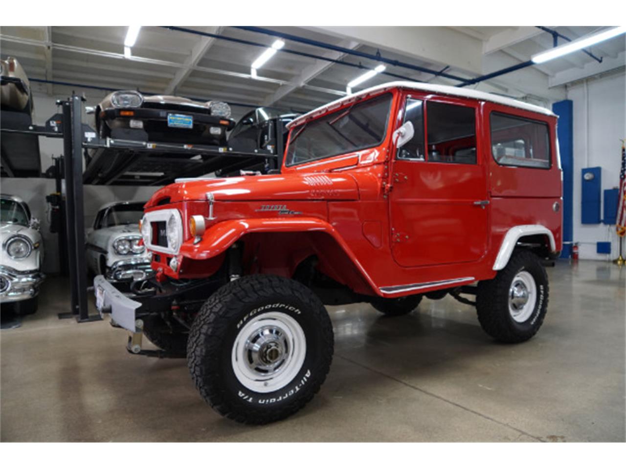 1965 Toyota Landcruiser 3.9L 6 Cylinder 4WD with an upgraded 4 speed manual transmission in the most desirable rigid 2 Door hardtop body-style with no signs of any previous body work. This particular example is one of the very desirable early models, a 1965 FJ40L 2 Door Hardtop with its date correct original F series (F 421220) 3,878cc 6 cylinder engine with 50K miles and boasting a later style removable White Hardtop, swing away rear tire carrier with a rare drop down tailgate, rear fender flares, Silver painted bumpers, original stock 15" wheels with correct and virtually still as new BF Goodrich all terrain T/A tires. The transmission shifts smoothly through the gears and the temperature always remains cool.