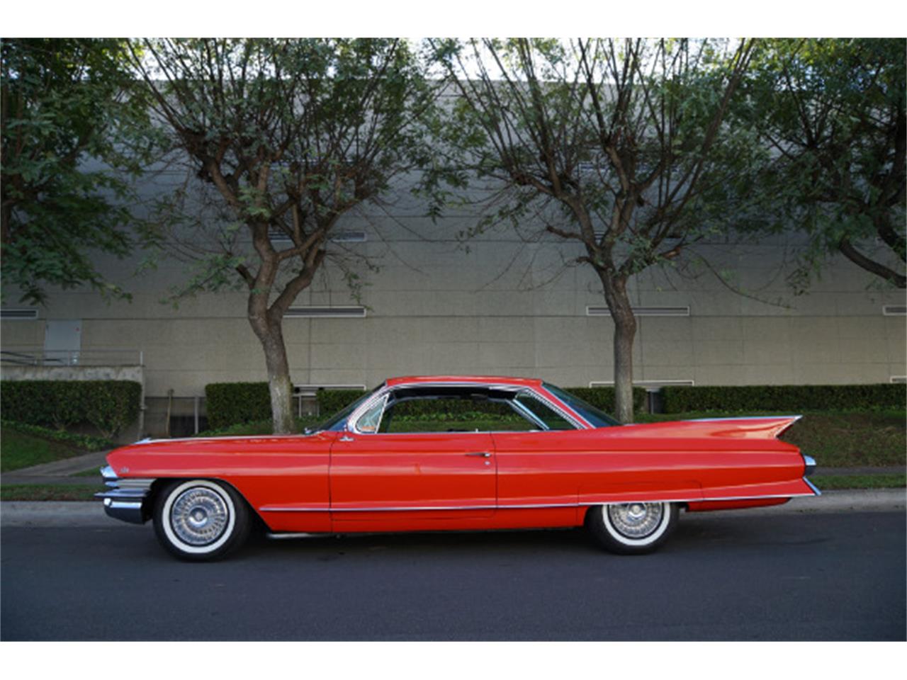 Beautiful 1961 Cadillac 2 Door Hardtop 'Coupe De Ville' in a striking 'Red' color with an equally striking 'Black amp; White Leather' interior and the 390/325HP 4 bbl V8 engine and factory options including;390/325HP 4 bbl V8 engine, Turbo Hydra-matic Transmission, Air Conditioning, Power Windows, Power Steering, Power Brakes, 6-Way Power Seat, Power Door Locks, Guide-Matic Headlamp Dimmers, Leather Upholstery, Rear Fender Skirts, Front amp; Rear Center Armrests, Rear Fender Skirts Left Side Remote Outside Mirror Front Cornering Lamps.