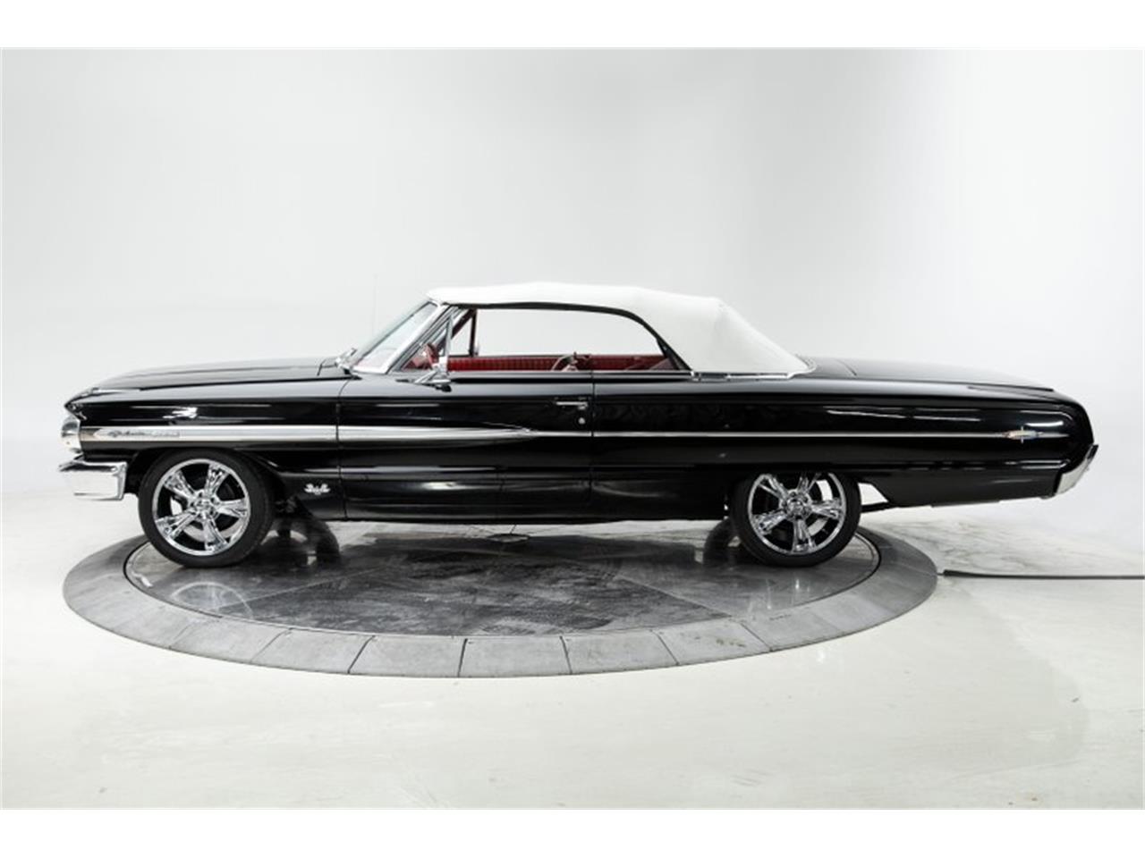 The upgraded XL interior is striking and with the bucket seats, console, and floor shifter it just screams full size style! This one is powered by the correct 390 V8 pushing 300 horse with 4 barrel carb dual exhaust, power steering and power brakes, and power top that make it easy and fun to drive. Finished in correct Mirror Gloss Raven Black with stunning red vinyl bucket seat interior and a white top, the visual is impressive.