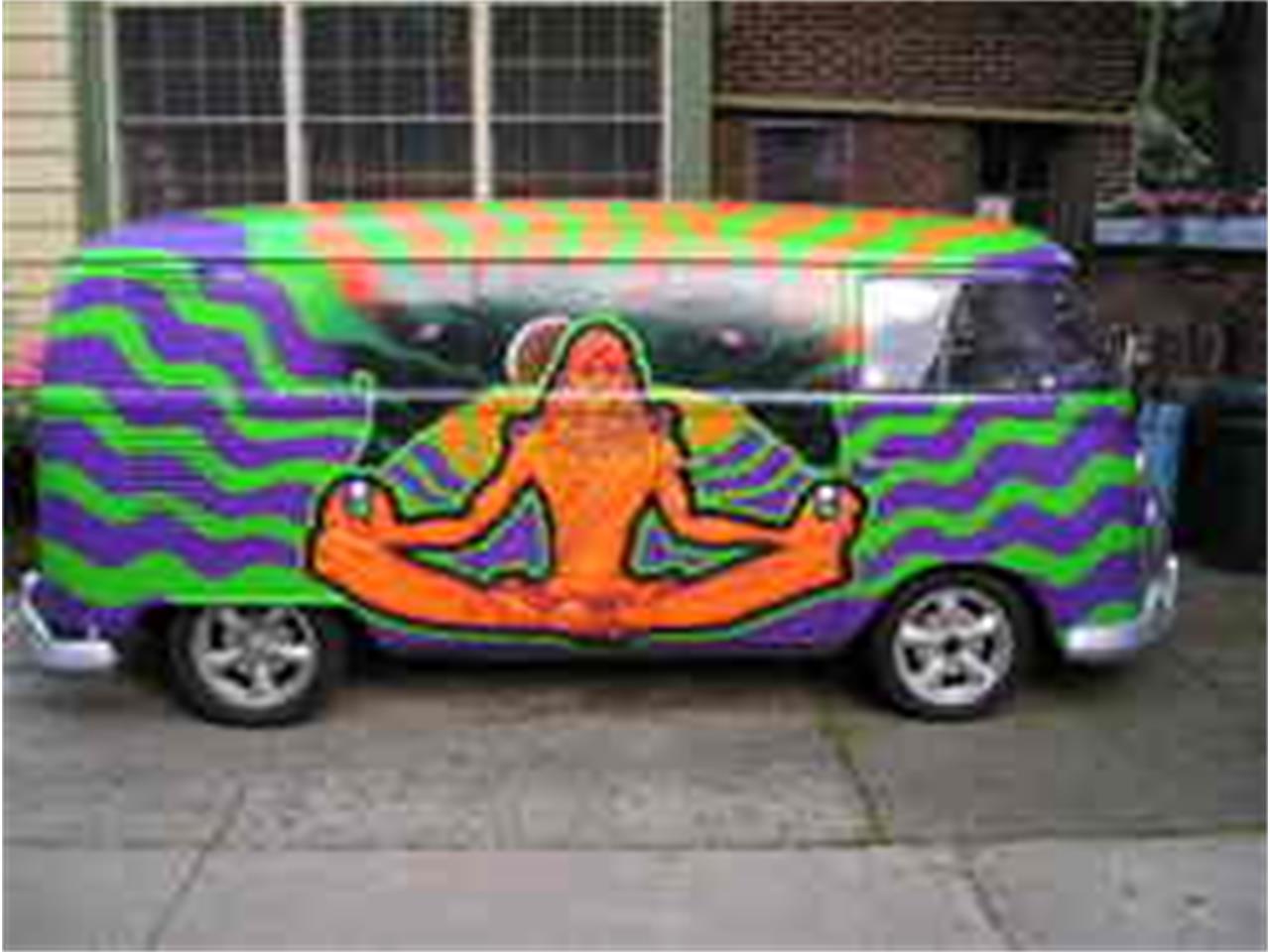 Jo, 1967 bus has been lowered with drop spindles in front and an upside down bug trans axle in the rear, with Empi style wheels.