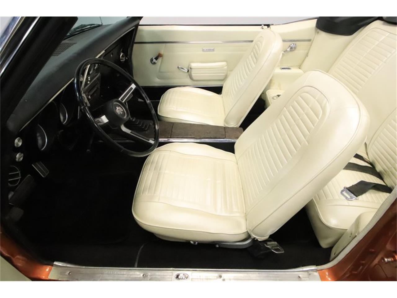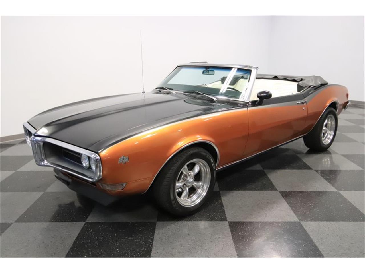 This 1968 Pontiac Firebird is in great condition. 383 cubic-inch stroker V8, three-speed automatic transmission, power steering, and power brakes w/discs up front. The orange and the gray have a nice contrast to give you a distinctive two-tone. And they both have a great metallic element to radiate when the sunlight hits the body: exactly what you want in a sunshine-friendly convertible.