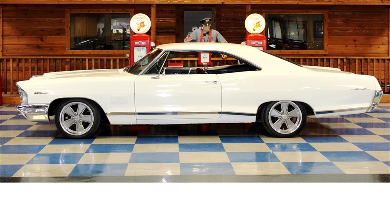 421 cui / 338 HP engine. TH400 Automatic transmission. 10 bolt rear end. Painted White exterior. Black vinyl bucket seat interior (code 233) with center console. Power brakes. Power steering. Magnaflow dual exhaust with manifolds. Chrome valve covers / air cleaner. Factory steering wheel. Factory gauge cluster. Power windows. Factory Delco AM radio (non-op). 18″ US Mag wheels.