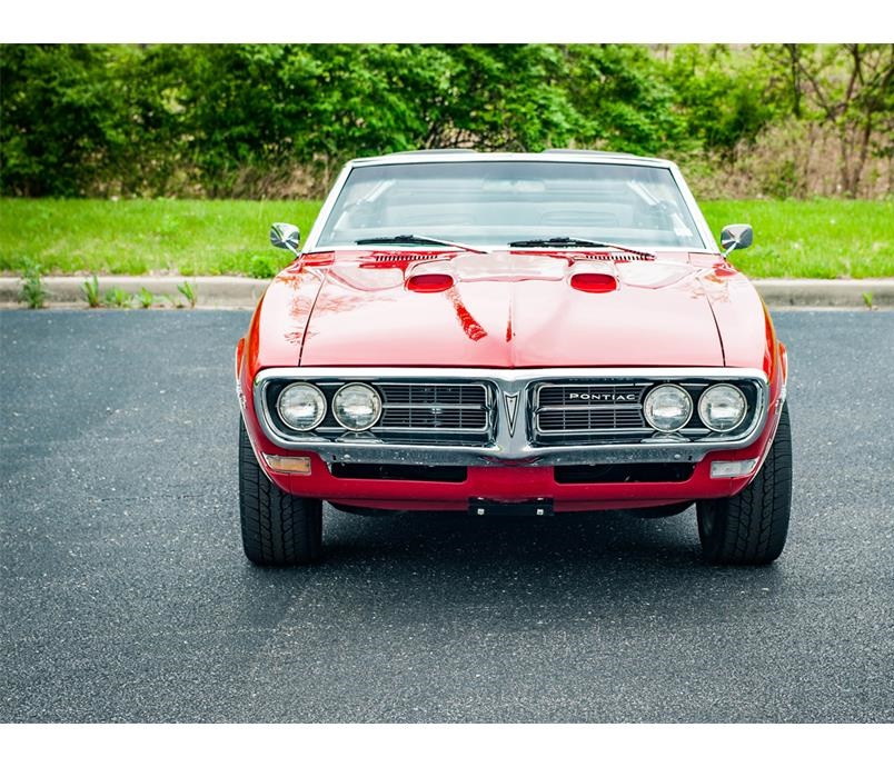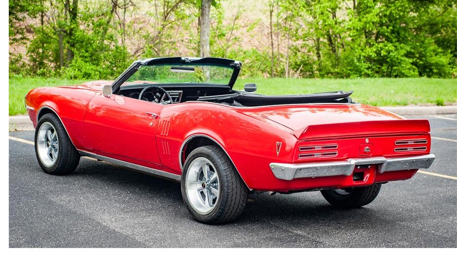 This amazing 1968 Pontiac Firebird Convertible for sale .The interior is black with black vinyl bucket seats and wood grain accents on the center console.The exterior is a gorgeous red and is paired with a black that is in great condition as well.
