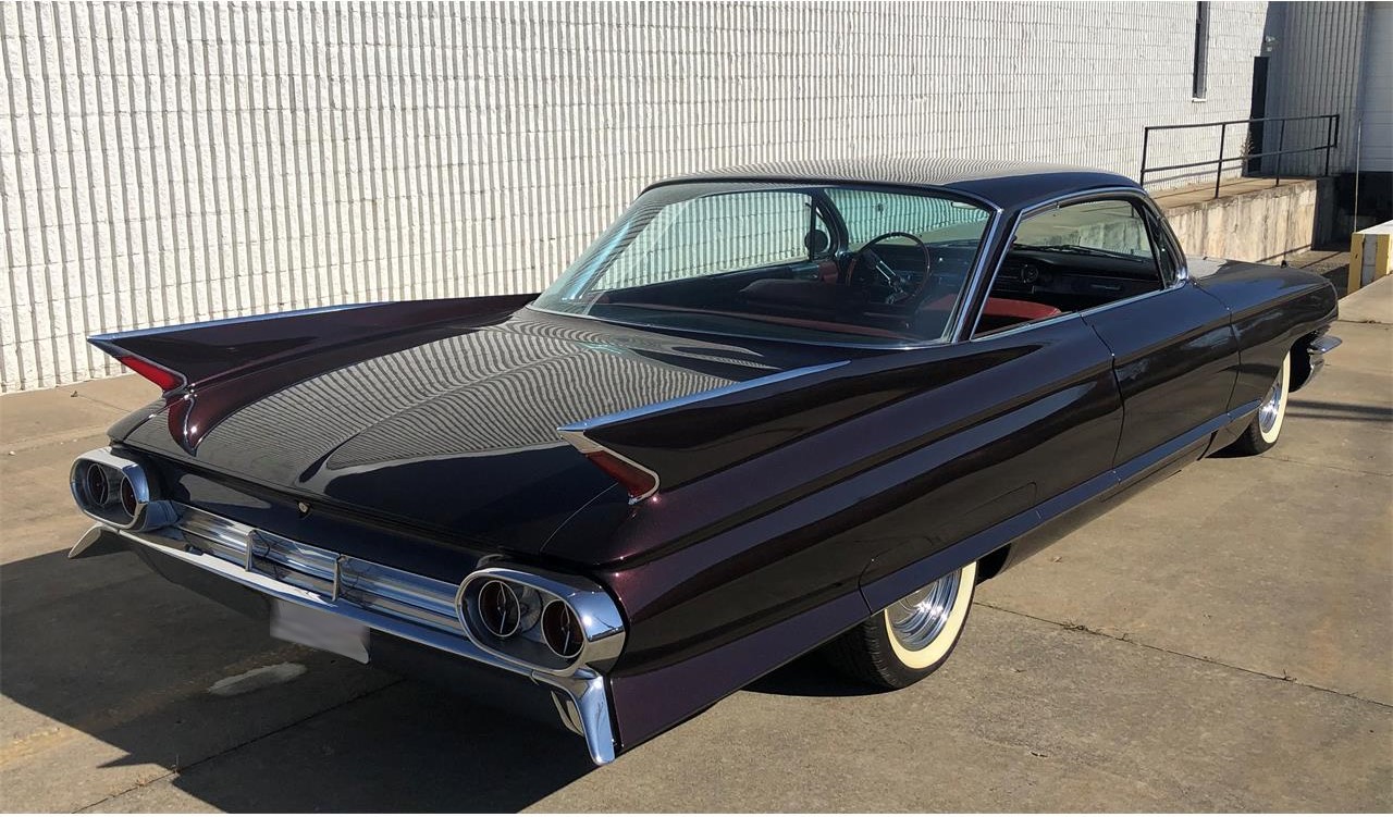 The 1961 Coupe de Ville sported dramatic styling coupled with a thin pillar roofline and fins reminiscent of rockets. For even more dramatic flair, the grille slanted back from a point toward both the bumper and the hood with dual headlamps at each side, and, for the first time, the de Ville model featured series designation scripts as standard equipment. This 2 door hardtop coupe has an 8 cylinder 390 cu in, 325 horsepower engine with a 4 speed Hydramatic automatic transmission.