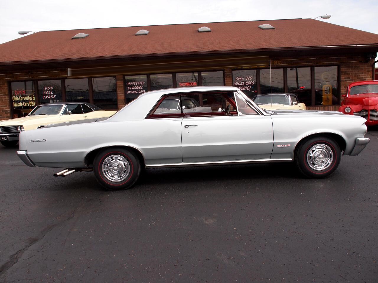 In 1964 the muscle car era began when Pontiac put a big engine in a mid size car and the GTO was born. This GTO sports silver mist paint and red vinyl bucket seats . Standard equipped with a 389 cubic in engine,this car came with the Tri Power option putting out 348 horsepower and Safe T Track rear end. The factory 4 speed has been upgraded to a new Tremec 5 speed manual transmission.