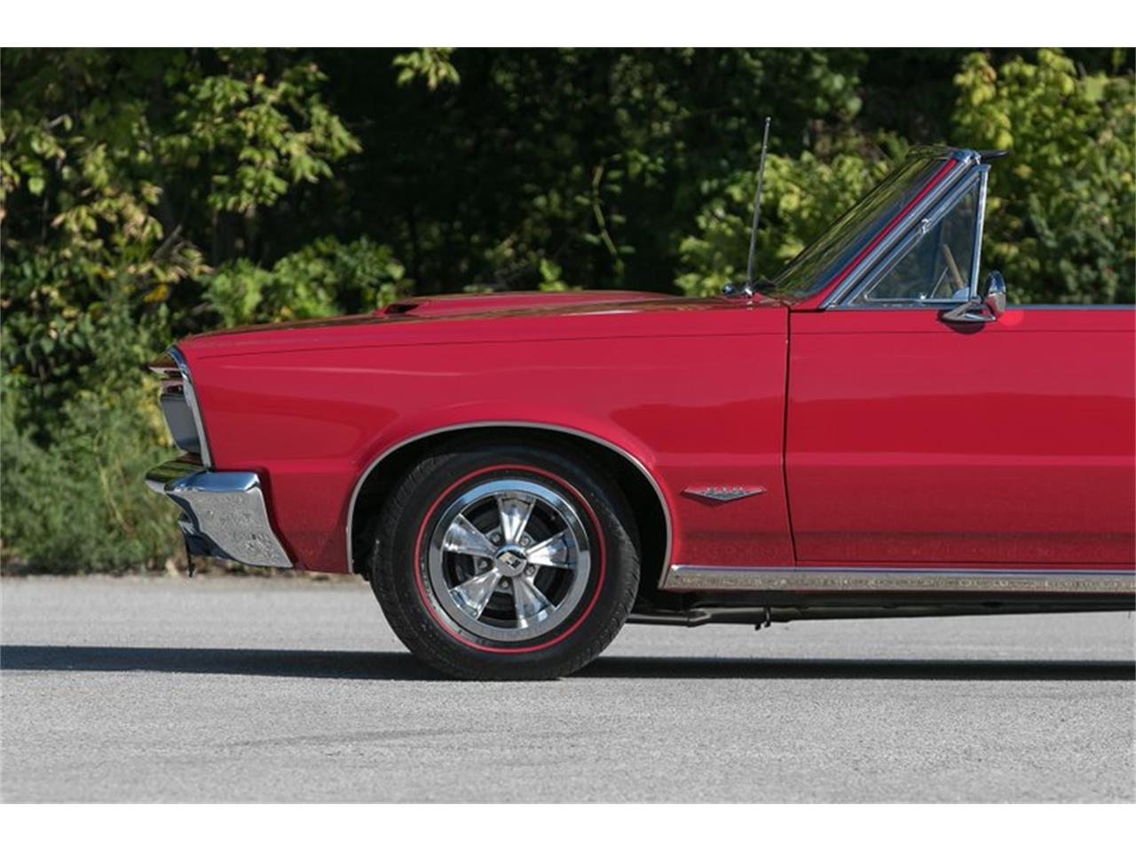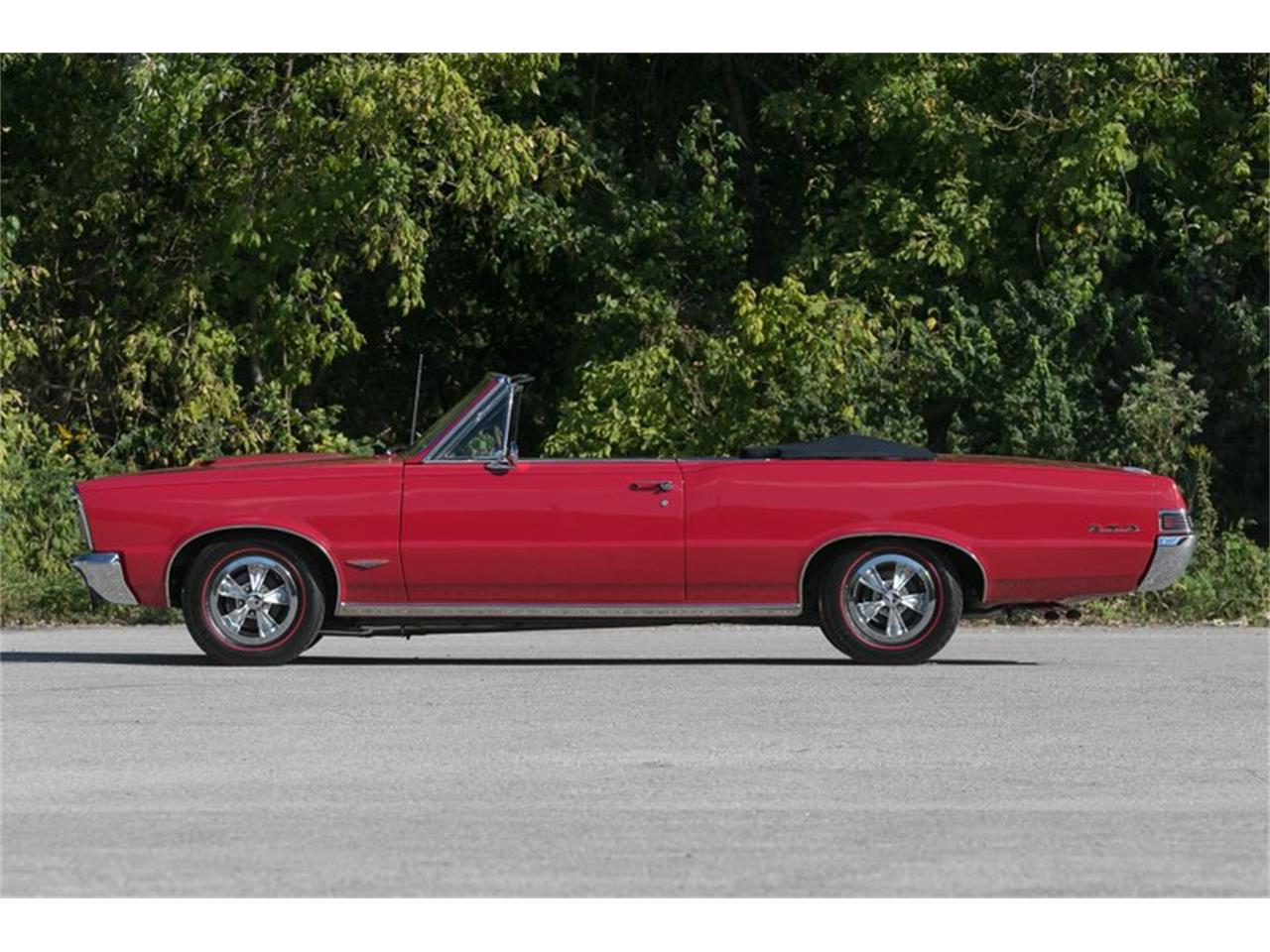 This 1965 Pontiac GTO Convertible for sale has a 389c.i. Tri Power V8 , 4 Speed Manual Transmission, 3.90 1 Rear End Ratio Safe T Track Limited Slip, Factory GTO, Correct Montereo Red Exterior, Correct Black Power Soft Top, Correct Black Bucket Seat Interior Center Console, Power Steering, Power Disc Brakes, Push Button AM Radio, 2 Speed Wipers.