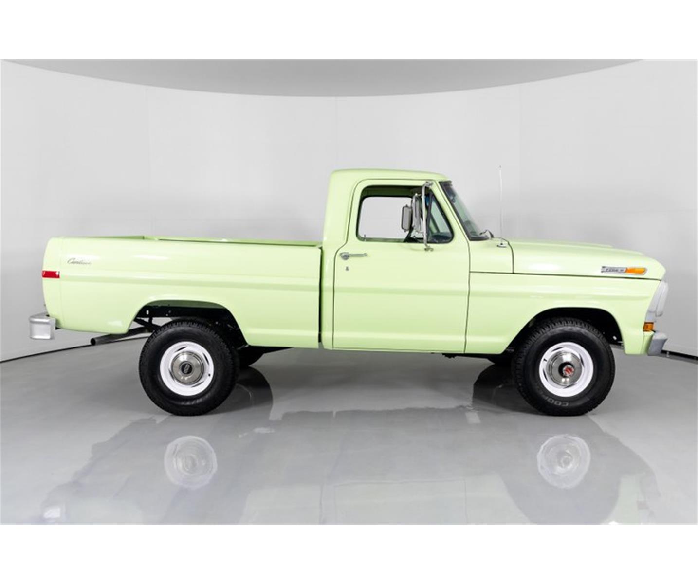 This 1972 Ford F100 Pickup for sale has a 390c.i. Ford V8 (1968 Date Coded) w/ 4bbl Carb, 4 Speed Manual Transmission, Ford 9" Rear w/ 3.50:1 Ratio, 43,532 ORIGINAL Miles! Winter Green Exterior, Correct Green Bench Seat Interior.
