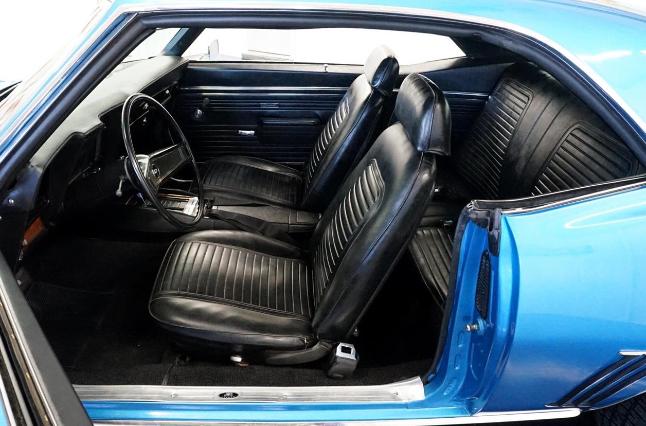 1969 Chevrolet Camaro.Beauty Rings and Center Caps. Black Vinyl Interior. Bright Drip Rail Moldings.