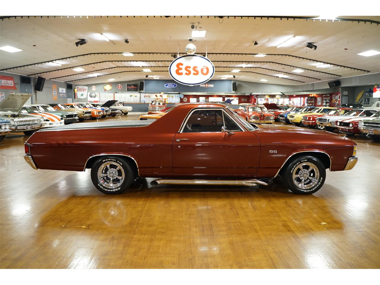 Chrome Brake Booster. Hood Pins. 15 Inch Polished Aluminum Wheels. Chrome Differential Cover. Jegs 8.0mm Plug Wires. 7-Blade Clutch Fan. Chrome Front and Rear Bumpers. Maroon Exterior. Aluminum Pulleys. Chrome Master Cylinder. Mechanical Fuel Pump. Aluminum Radiator. Chrome Side Pipes. Polished Aluminum Intake. AM/FM/Cassette Radio. Column Shift. Polished Aluminum Water Pump. American Racing Wheels. Dark Gold Stripes. Power Brakes. AutoMeter Oil Pressure Gauge. Driver and Passenger Side Mirrors. Power Steering. AutoMeter Water Temperature Gauge. Electric Choke. Proform Dual Feed 4-BBL Carburetor. Bench Seats with Headrests. Factory Dash. Seat Belts. BFGoodrich Radial TA Tires. Factory Heater Controls. SS Fender Emblems. Black Chevrolet valve covers. Factory Instrumentation. SS Grille Emblem. Black Cloth Interior. Fan Shroud. SS Tailgate Emblems. Brakes Rear: Drum. Front and Rear Sway Bars. Steel 2-Inch Cowl Induction Hood. Breather and PCV Valve.