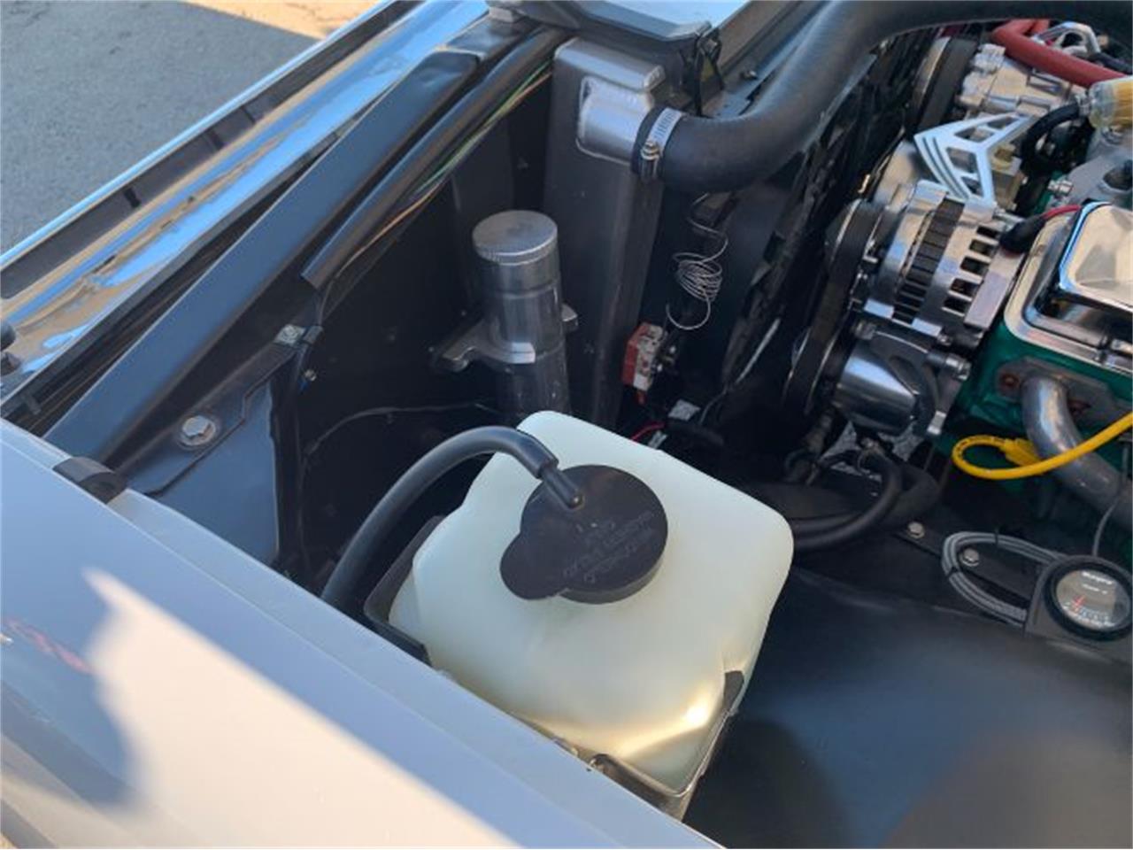 This 1969 GMC short bed pickup truck had a frame off restoration with a shaved gas filler cap, tailgate handle, and bed rails.