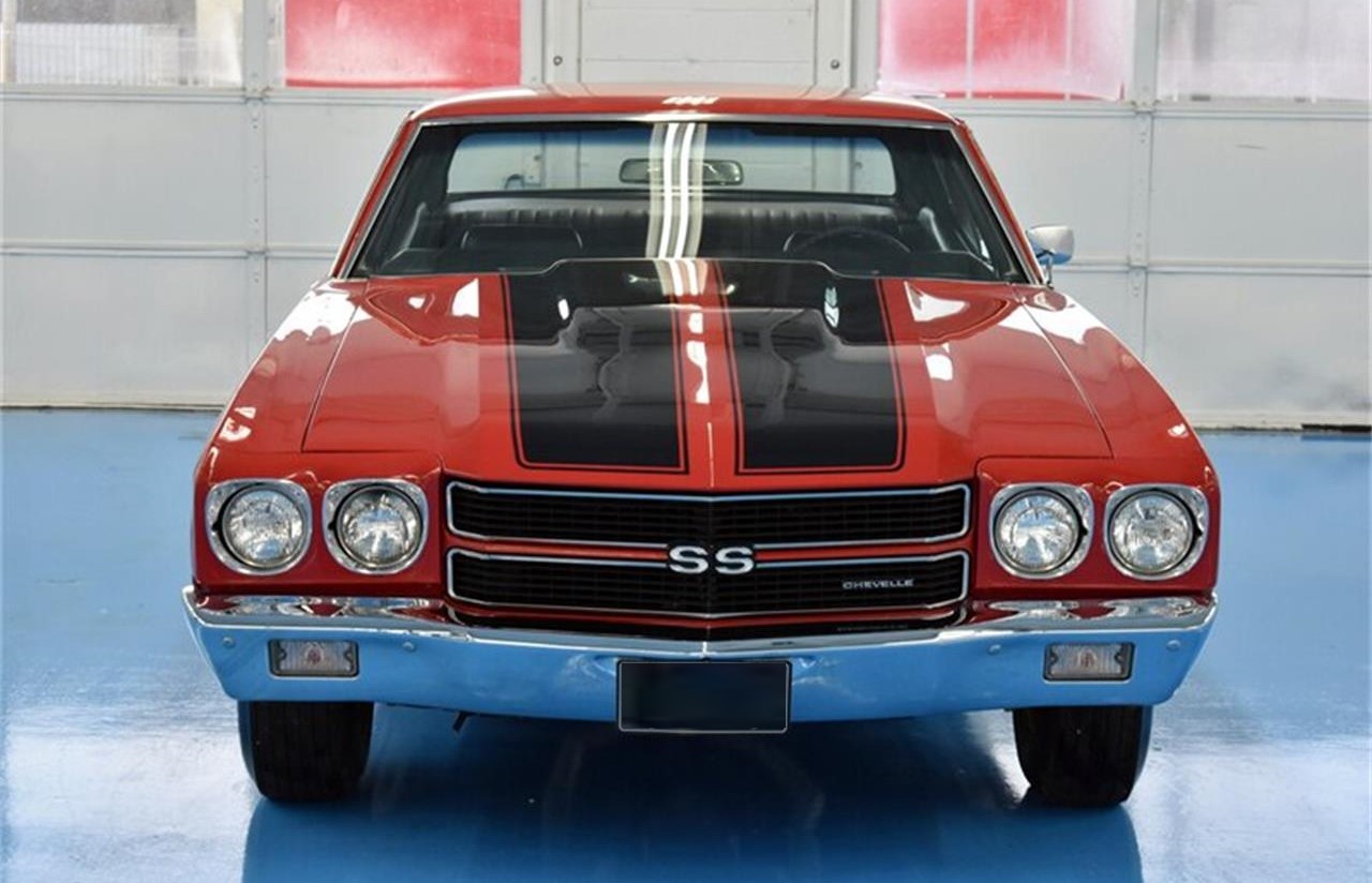 1970 Chevelle SS Original Color Code 75 Cranberry Red with Black Stripes and Black Interior.