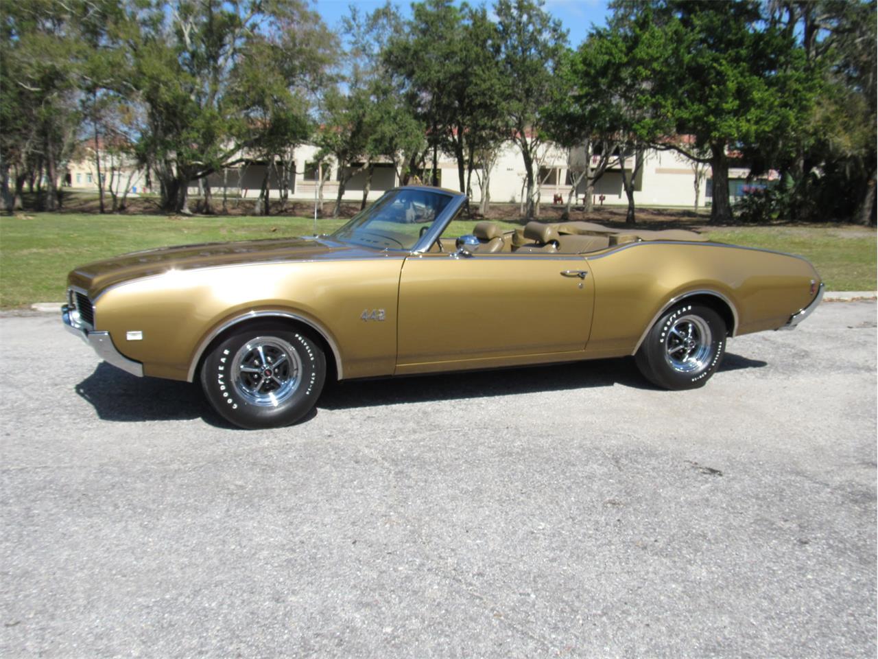 this authentic 442 convertible was entirely disassembled and completely stripped of its dull, original pigment And painted in its Original color of Aztec Gold with Saddle Interior and Black Power Top.