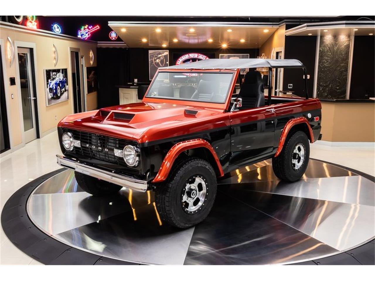 Check out this beautiful 1970 Ford Bronco! This custom Bronco is sporting a glossy Black and Sunburst Orange Paint finish, Black Interior, Carbon Fiber Decal Stripe, Bikini Top, Custom Hood, American Racing Wheels, along with Polished Components all around that's sure to turn heads wherever you go! This Bronco has undergone a complete Nut and Bolt Restoration and it looks amazing throughout! Under the hood sits a Ford 302ci V8 Engine mated to a Ford 3.