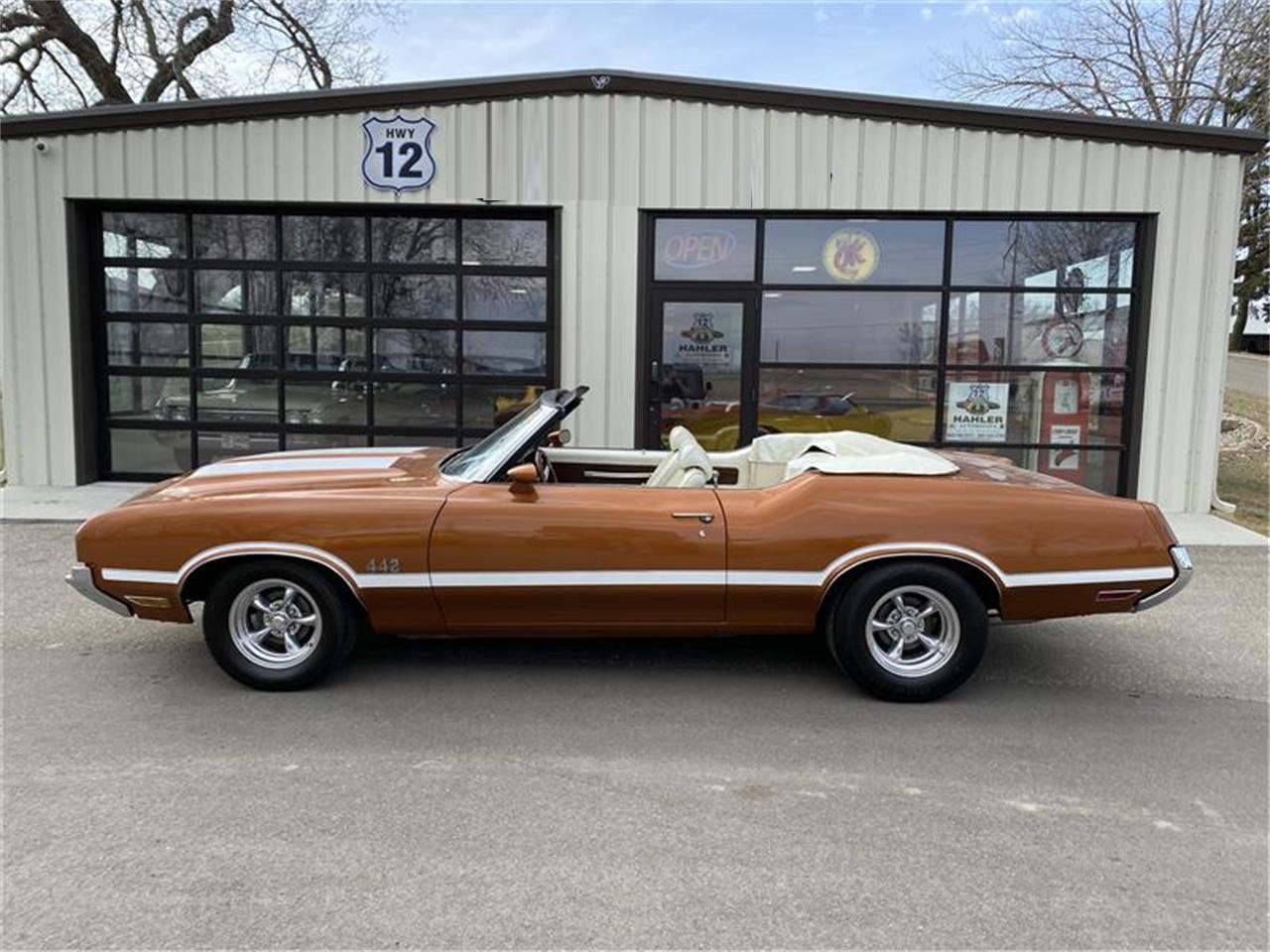 1971 Oldsmobile Cutlass Convertible 350 ci V8 engine mated to a 3 speed automatic transmission with a console shifter.