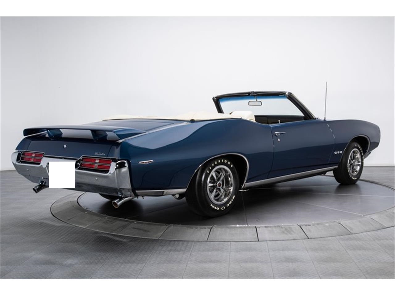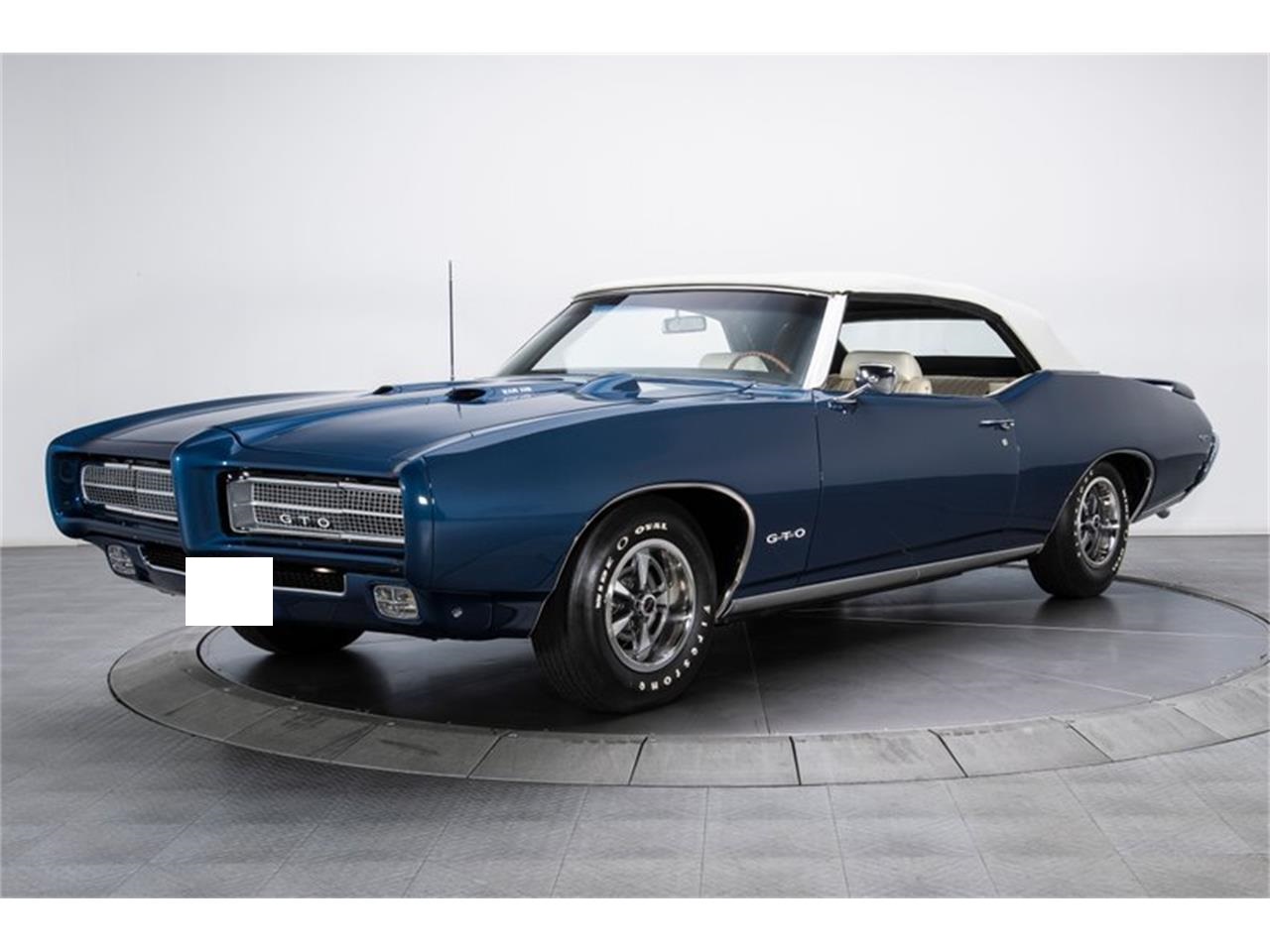 This fully-sorted goat mixes 400 cubic inches of smooth Pontiac power with a tough Turbo-Hydramatic 400 and attractive Liberty Blue and Parchment aesthetics. Correct 400 cubic inch Pontiac V8 with retrofitted Ram Air induction Correct Turbo-Hydramatic 400 3-speed automatic transmission Correct 10-bolt rear axle with a posi-traction differential and 3.55 gears Correct power steering Correct power front disc and rear drum brakes Correct Liberty Blue paint with correct, hidden headlights Parchment interior with a correct, power-operated top 14-inch Pontiac Rally II wheels