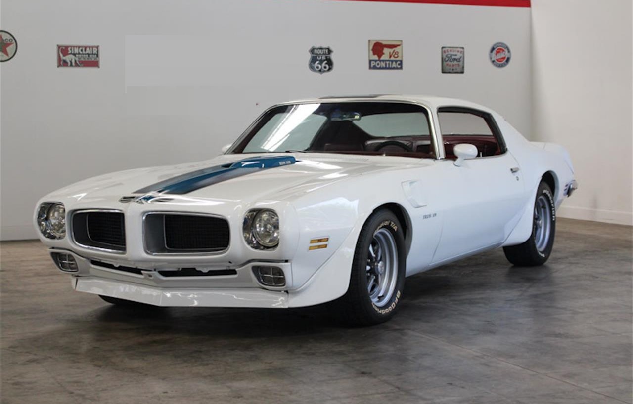 This 1970 Pontiac Firebird Trans Am 2 Door Hardtop , This gorgeous 1970 Pontiac Firebird Trans Am 2 Door Hardtop with Polar White exterior paint, blue center stripe and a rare factory red cloth interior. You ll find a factory true YZ coded Ram Air III 400 cid V 8 engine under the hood with the matching automatic transmission, a 12 both Posi traction rear end, power steering , power front disc brakes and a factory 8 Track player.