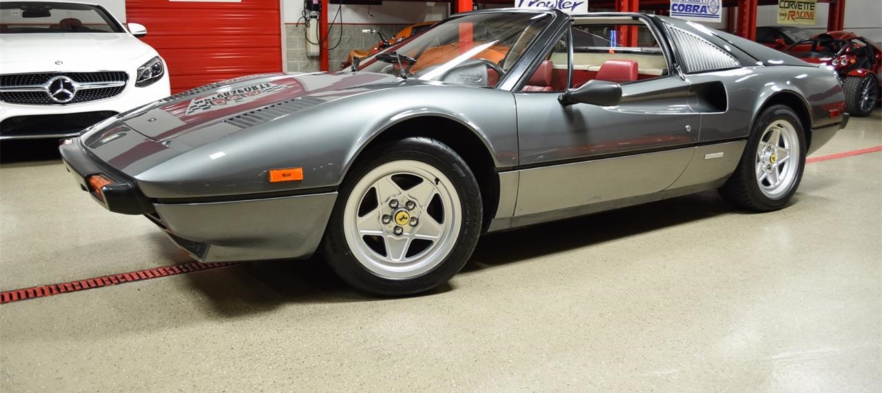 1980 Ferrari 308 GTSi finished in Gray over Red Leather with Only 17,846 Miles. Vehicle Highlights: 2.9 Liter V8 Engine rated at 214 Horsepower, 5 Speed Manual Transmission, Rear Wheel Drive, Removable Targa Top, Power Windows, Air Conditioning, Leather Wrapped Steering Wheel.