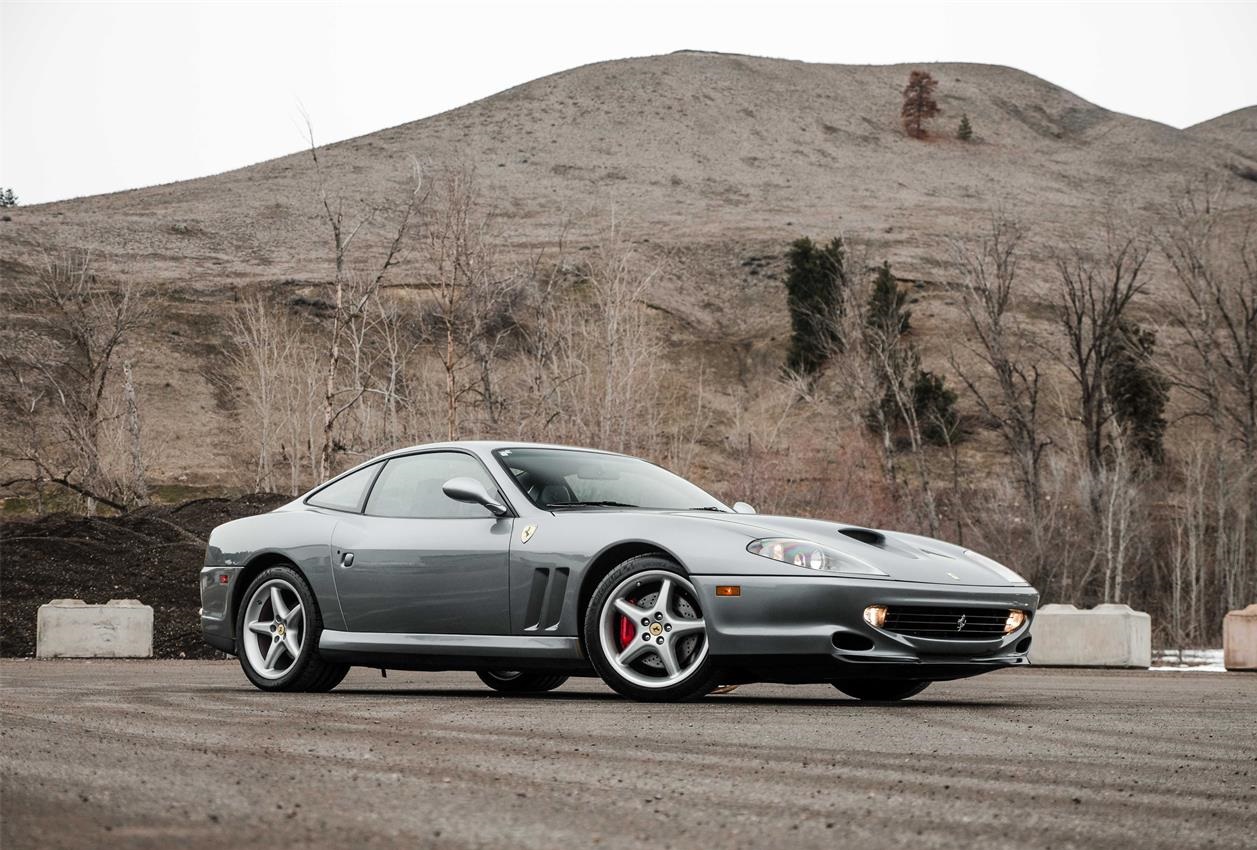 gorgeous 550 Maranello by Ferrari, presented in sought after Grigio Titanio Metallic over Black Daytona Style Seat Trim and perfectly complimented by the Dark Blue Carpeting.