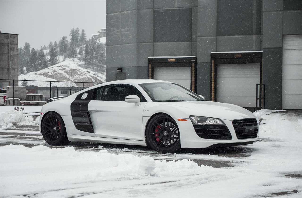 This stunning R8 V10 by Audi, presented in classic Ibis White over Black Fine Nappa Leather Seat Trim and perfectly complimented by a Carbon Sigma Sideblade.