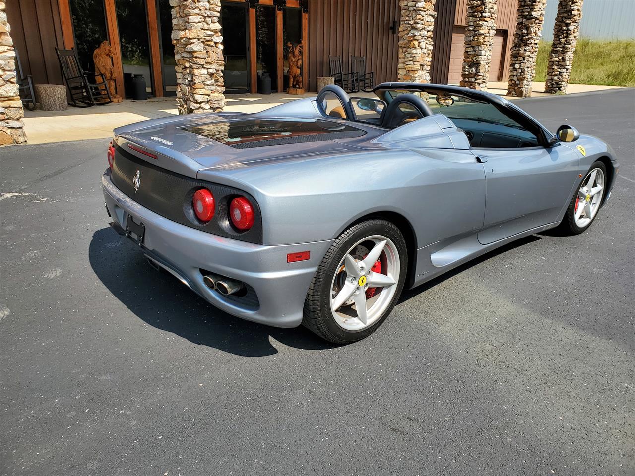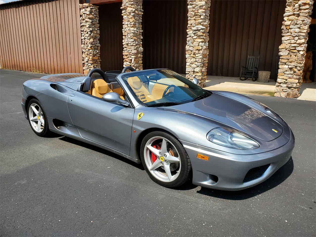 Ferrari 360 With only 8,577 miles on the odometer since new, this features the F1 paddle-shifted transmission and is one of the lowest mileage 360 Spiders. Stored in a humidity-controlled environment. Grigio (silver) Alloy with tan interior and blue convertible top, this 2003 Ferrari 360 Spider is in excellent condition.