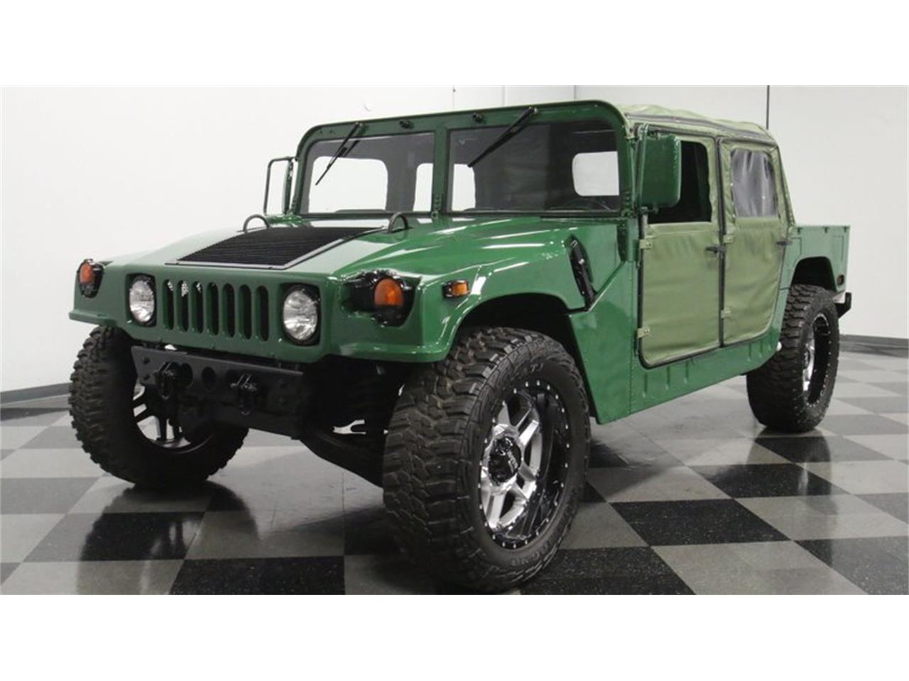 The paint is in great shape, with a glossy shine and consistent pigmentation and the added contrasting black paint over the hood vents and surrounding the headlights confers just the right touch of customization. This Humvee is mechanically well-equipped for rugged dependable duty in any conditions you might find yourself. Its fuel injected 6.2 liter engine fires right up and runs smoothly, teaming with a 3 speed automatic transmission that's shifting in top form. With its four-wheel drive accompanied by a two-speed locking transfer and sturdy independent suspensions at both ends, there really isn't much that can stop this Humvee from moving forward, something it can actually and ably do while still carrying quite a payload. A 95-gallon fuel tank.